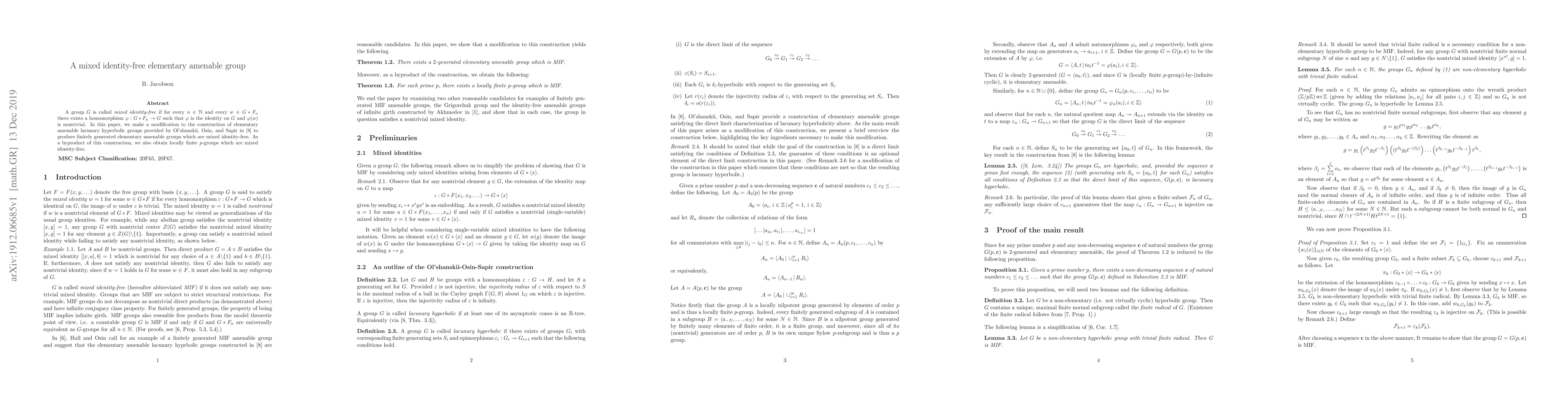 Researchers create a new type of group that is both elementary amenable and mixed identity-free, with potential applications in the study of locally finite p-groups.