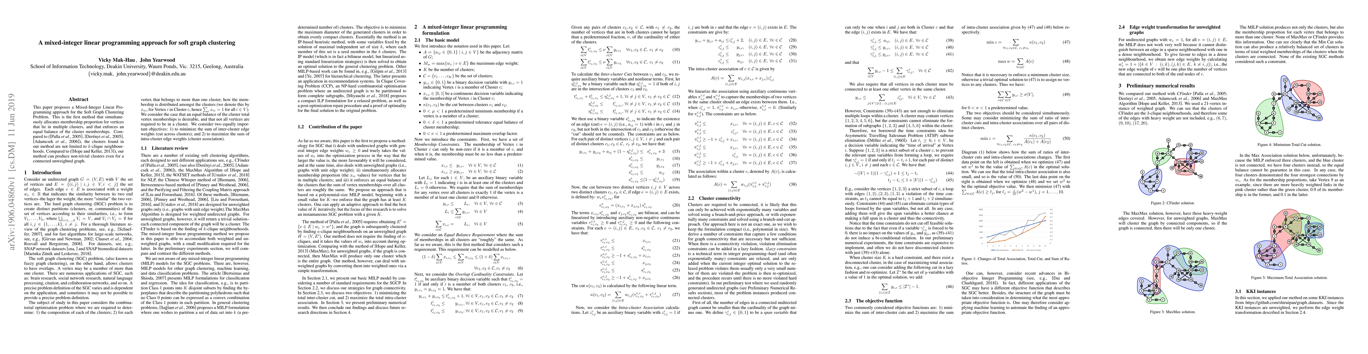 This paper introduces a Mixed-Integer Linear Programming approach for soft graph clustering, enabling simultaneous allocation of membership proportions across multiple clusters while enforcing equal balance. Unlike previous methods, it can produce non-trivial clusters in connected unweighted graphs.