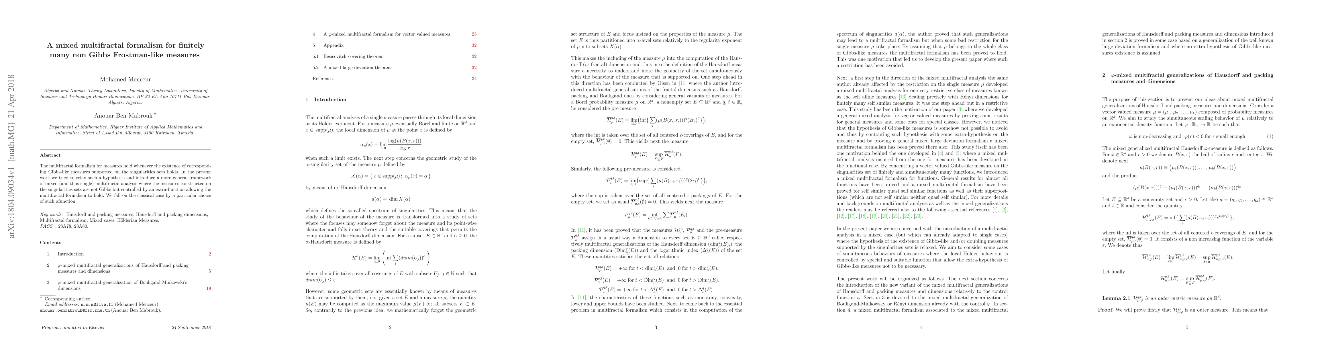 This paper introduces a mixed multifractal formalism to analyze finitely many non-Gibbs Frostman-like measures, allowing the multifractal formalism to hold even when traditional Gibbs-like measures are not applicable, through the use of an extra-controlling function. The classical multifractal analysis is recovered with a specific choice of this function.