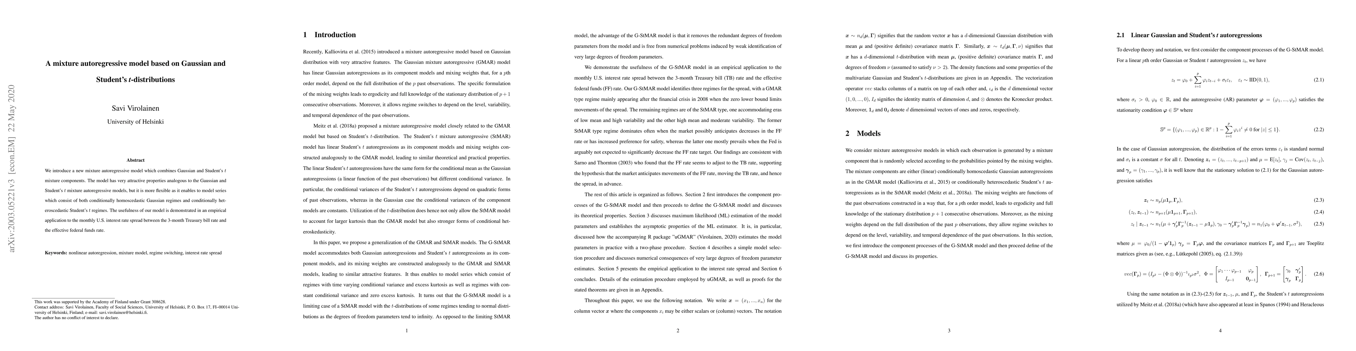 This paper proposes a novel mixture autoregressive model that integrates Gaussian and Student's $t$ distributions, offering greater flexibility to model time series with both homoscedastic and heteroscedastic regimes. The model's effectiveness is showcased through an empirical analysis of the U.S. interest rate spread.