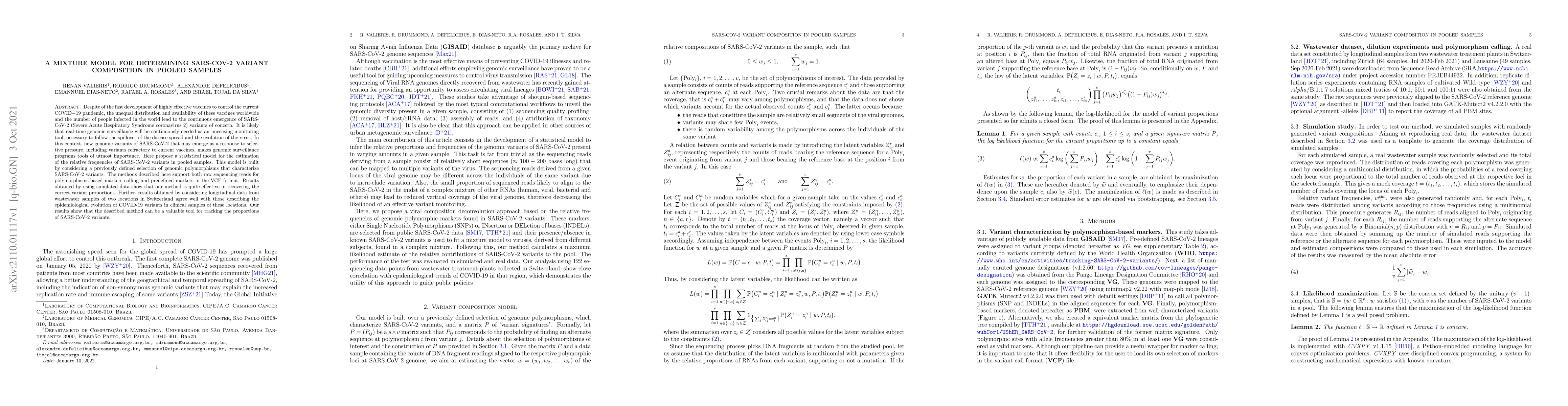 This paper proposes a statistical mixture model to determine the composition of SARS-CoV-2 variants in pooled genomic samples, using predefined genomic polymorphisms. The model effectively estimates variant proportions, as demonstrated by simulated data and real longitudinal wastewater samples from Switzerland, making it a valuable tool for genomic surveillance.