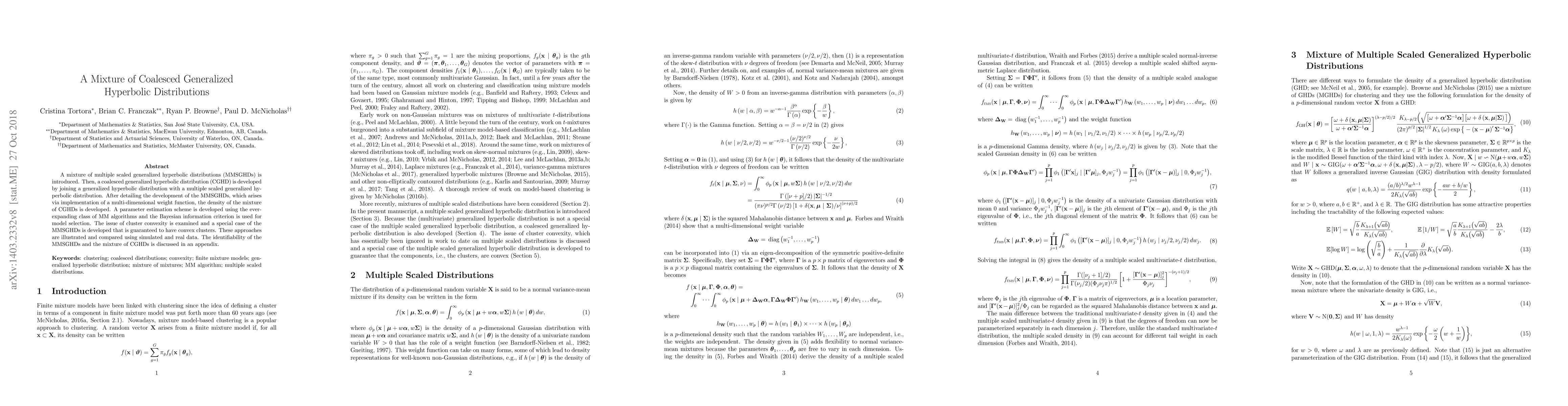 This paper introduces a mixture of coalesced generalized hyperbolic distributions (CGHDs) and develops a method for parameter estimation using MM algorithms. It also explores cluster convexity and presents a special case ensuring convex clusters, illustrated with simulated and real data.