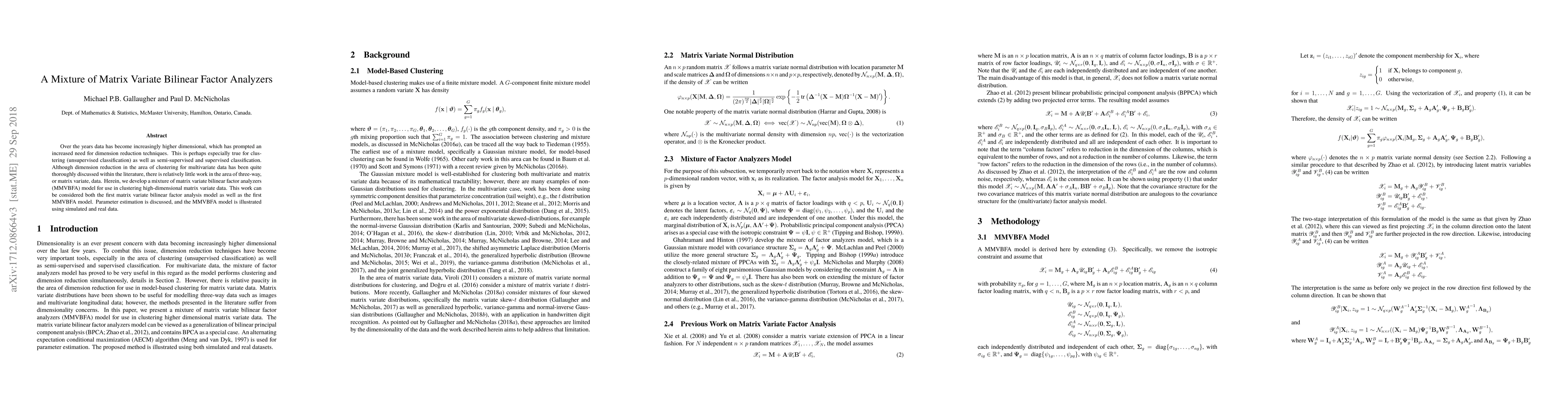 This paper introduces a novel mixture of matrix variate bilinear factor analyzers (MMVBFA) model for clustering high-dimensional matrix variate data, addressing the gap in existing literature for three-way data. The paper also discusses parameter estimation and demonstrates the model's effectiveness using both simulated and real data.