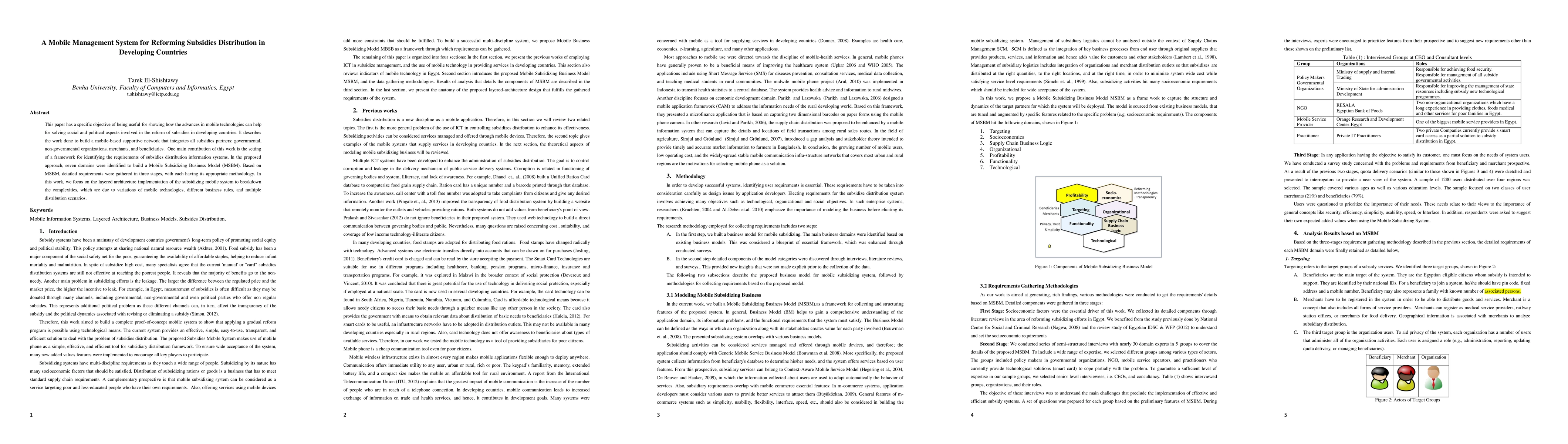 This paper has a specific objective of being useful for showing how the advances in mobile technologies can help for solving social and political aspects involved in the reform of subsidies in developing countries. It describes the work done to build a mobile-based supportive network that integrates all subsidies partners: governmental, non-governmental organizations, merchants, and beneficiaries. One main contribution of this work is the setting of a framework for identifying the requirements of subsidies distribution information systems. In the proposed approach, seven domains were identified to build a Mobile Subsidizing Business Model (MSBM). Based on MSBM, detailed requirements were gathered in three stages, with each having its appropriate methodology. In this work, we focus on the layered architecture implementation of the subsidizing mobile system to breakdown the complexities, which are due to variations of mobile technologies, different business rules, and multiple distribution scenarios.