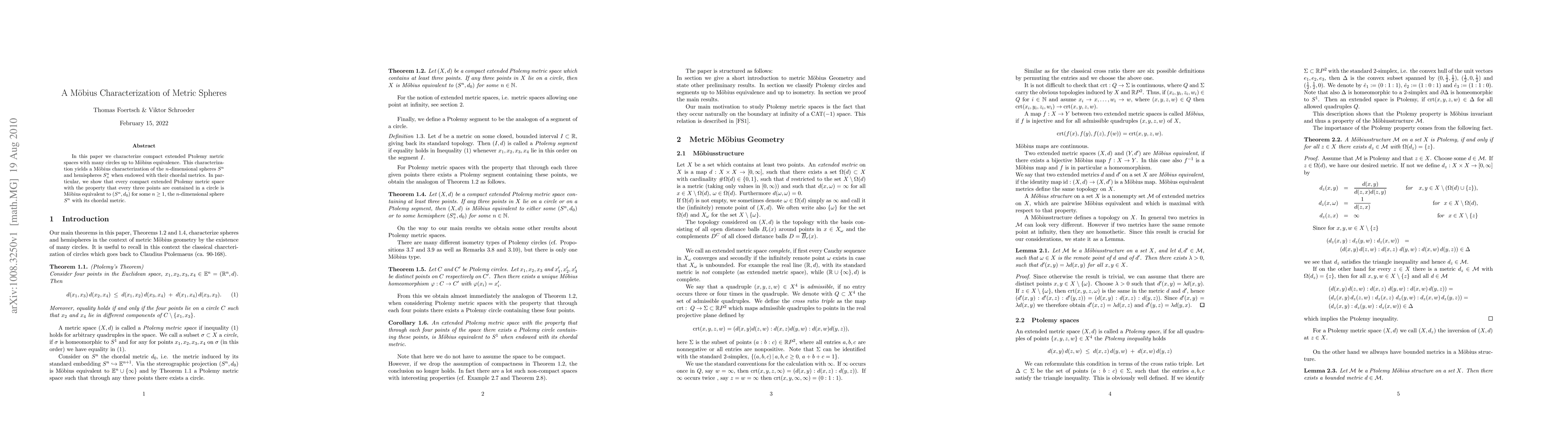 This paper characterizes $n$-dimensional spheres $S^n$ and hemispheres $S^n_+$ using Möbius equivalence in extended Ptolemy metric spaces, proving that any such space where every three points lie on a circle is Möbius equivalent to $S^n$ with its chordal metric.