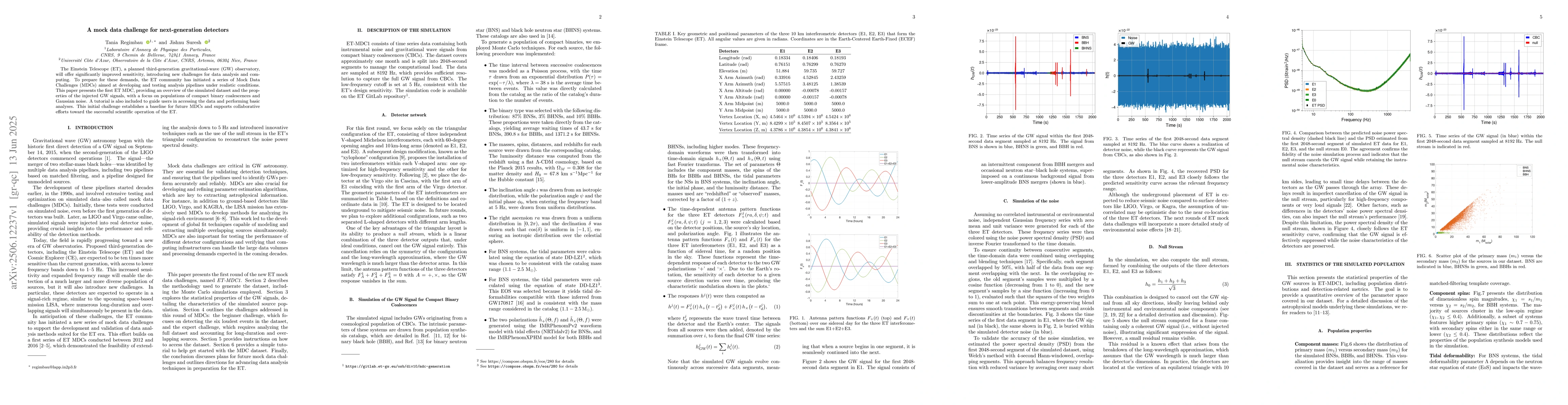 The Einstein Telescope (ET), a planned third-generation gravitational-wave (GW) observatory, will offer significantly improved sensitivity, introducing new challenges for data analysis and computing. To prepare for these demands, the ET community has initiated a series of Mock Data Challenges (MDCs) aimed at developing and testing analysis pipelines under realistic conditions. This paper presents the first ET MDC, providing an overview of the simulated dataset and the properties of the injected GW signals, with a focus on populations of compact binary coalescences and Gaussian noise. A tutorial is also included to guide users in accessing the data and performing basic analyses. This initial challenge establishes a baseline for future MDCs and supports collaborative efforts toward the successful scientific operation of the ET.