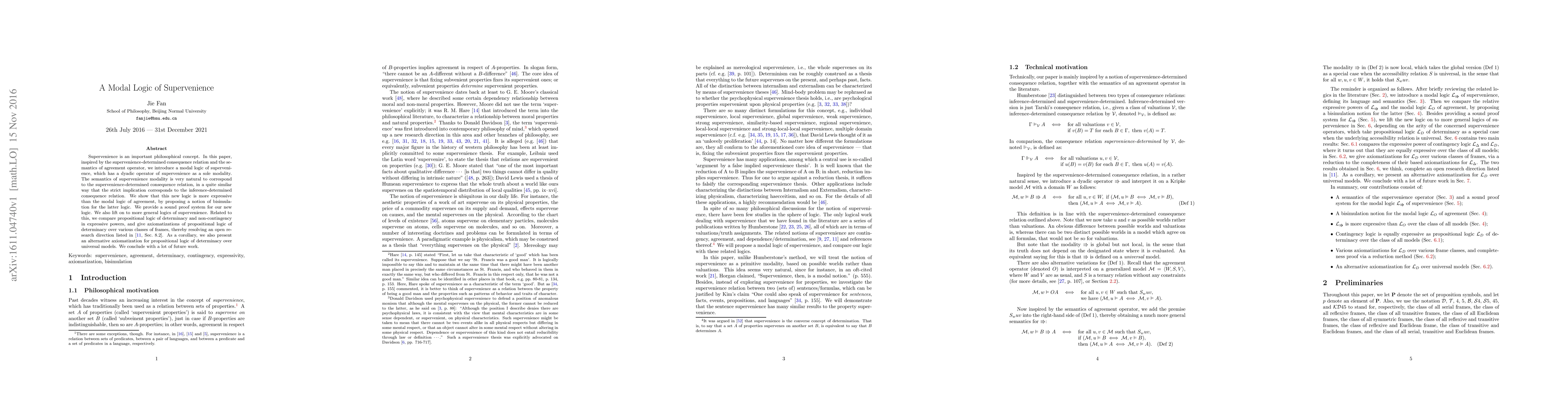 This paper introduces a new modal logic featuring a dyadic supervenience operator, demonstrating its expressiveness over modal logic of agreement and providing a sound proof system. It also resolves open questions regarding the propositional logic of determinacy and offers alternative axiomatizations.