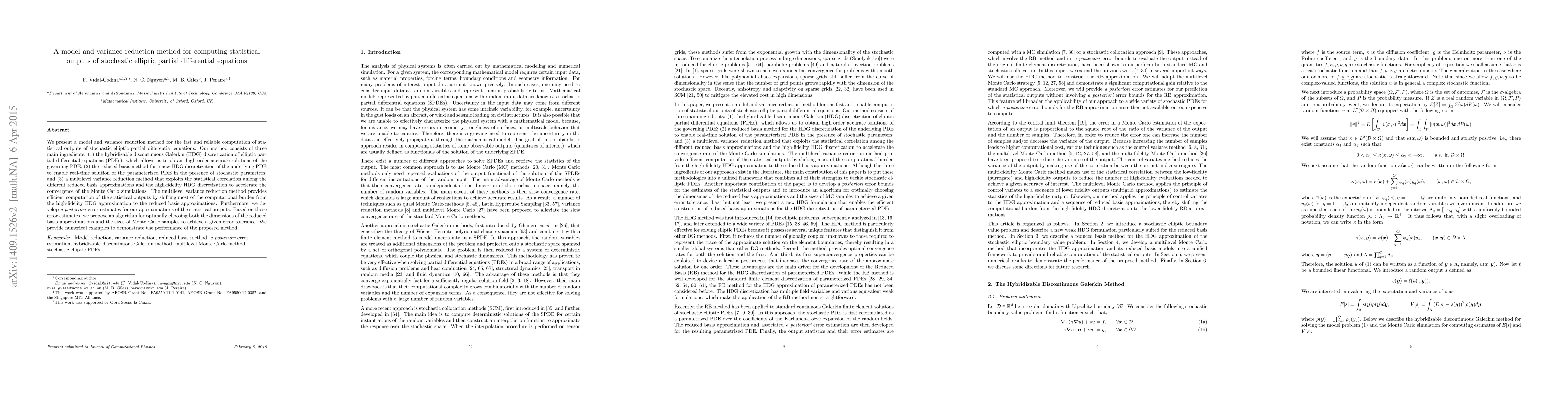 This paper presents a model and variance reduction method for efficiently computing statistical outputs of stochastic elliptic partial differential equations using hybridizable discontinuous Galerkin (HDG) discretization, reduced basis methods, and multilevel variance reduction techniques to enhance Monte Carlo simulation convergence. The method includes \textit{a posteriori} error estimates and an algorithm for optimal selection of reduced basis dimensions and Monte Carlo sample sizes.