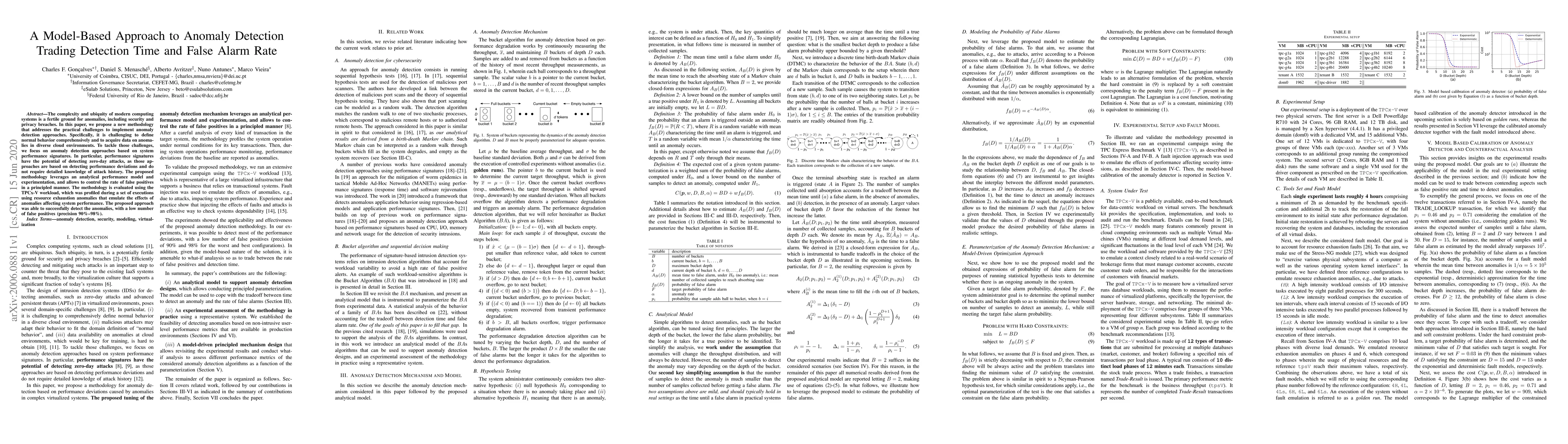 The complexity and ubiquity of modern computing systems is a fertile ground for anomalies, including security and privacy breaches. In this paper, we propose a new methodology that addresses the practical challenges to implement anomaly detection approaches. Specifically, it is challenging to define normal behavior comprehensively and to acquire data on anomalies in diverse cloud environments. To tackle those challenges, we focus on anomaly detection approaches based on system performance signatures. In particular, performance signatures have the potential of detecting zero-day attacks, as those approaches are based on detecting performance deviations and do not require detailed knowledge of attack history. The proposed methodology leverages an analytical performance model and experimentation and allows to control the rate of false positives in a principled manner. The methodology is evaluated using the TPCx-V workload, which was profiled during a set of executions using resource exhaustion anomalies that emulate the effects of anomalies affecting system performance. The proposed approach was able to successfully detect the anomalies, with a low number of false positives (precision 90%-98%).