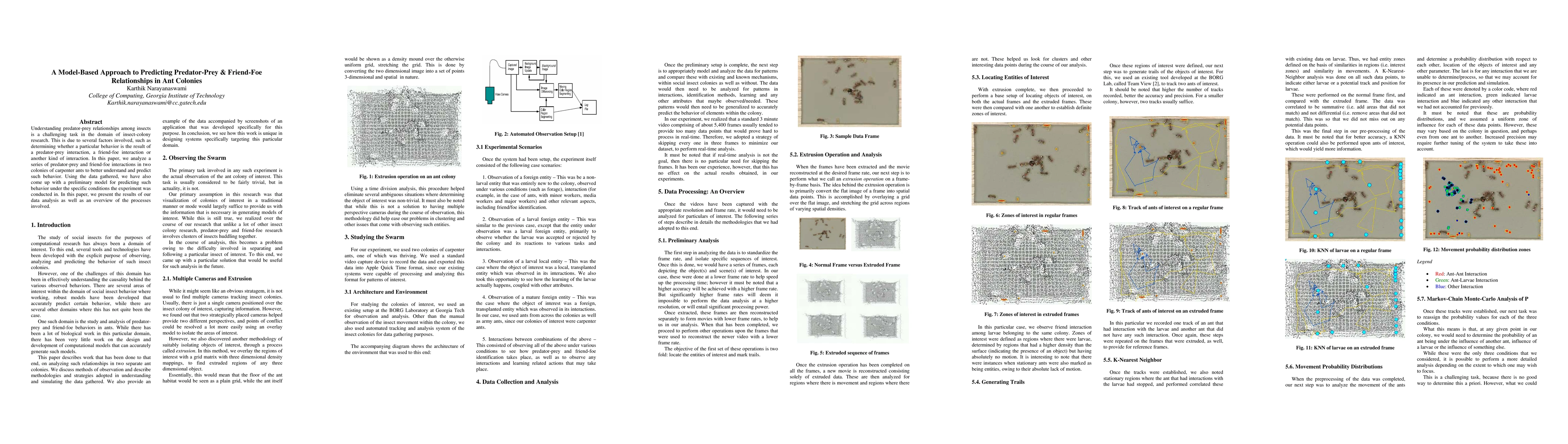 Understanding predator-prey relationships among insects is a challenging task in the domain of insect-colony research. This is due to several factors involved, such as determining whether a particular behavior is the result of a predator-prey interaction, a friend-foe interaction or another kind of interaction. In this paper, we analyze a series of predator-prey and friend-foe interactions in two colonies of carpenter ants to better understand and predict such behavior. Using the data gathered, we have also come up with a preliminary model for predicting such behavior under the specific conditions the experiment was conducted in. In this paper, we present the results of our data analysis as well as an overview of the processes involved.