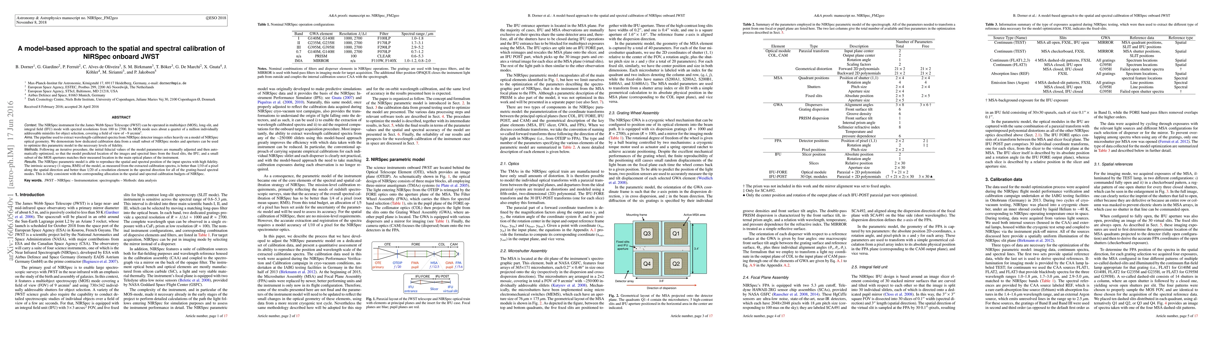 This paper presents a model-based approach to calibrate the spatial and spectral performance of the NIRSpec instrument on the JWST, achieving high fidelity in reproducing the positions of input spectra. The iterative optimization of the model parameters ensures an accuracy better than 1/10 of a pixel spatially and 1/20 of a spectral resolution element, meeting NIRSpec's calibration budget.