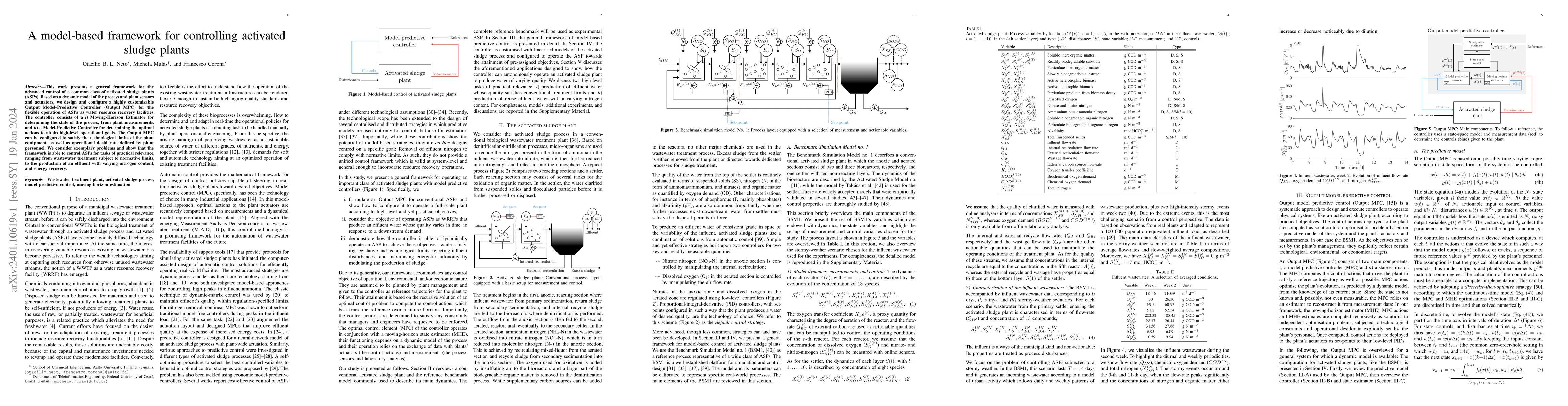 This paper introduces a customizable Output Model-Predictive Controller (Output MPC) for advanced control of activated sludge plants (ASPs), integrating a Moving-Horizon Estimator and a Model-Predictive Controller to achieve optimal operational goals and satisfy plant constraints. The framework effectively manages tasks like wastewater treatment, nitrogen content control, and energy recovery.