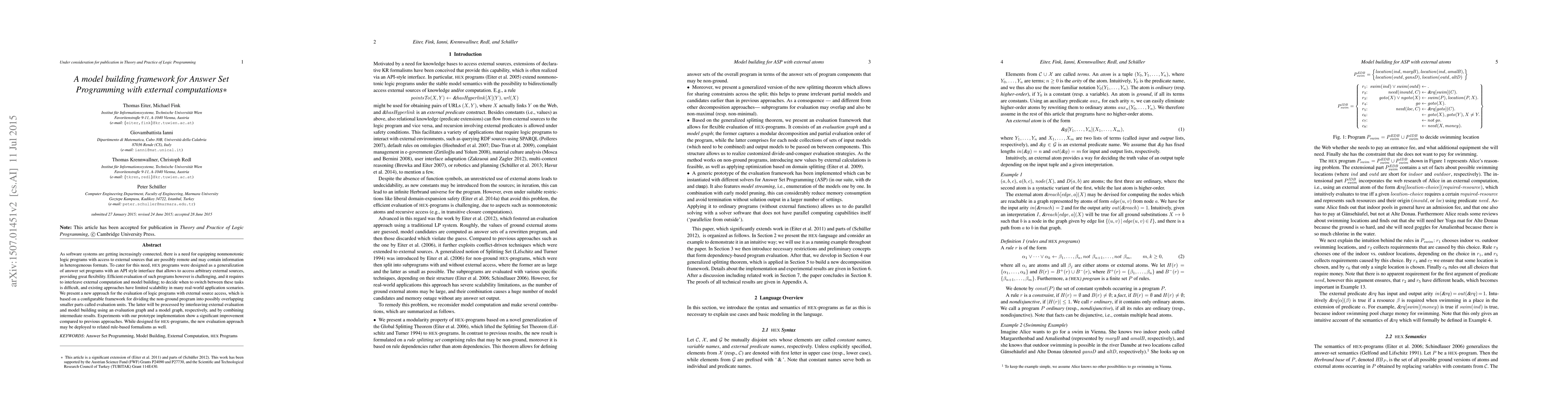 This paper introduces a new framework for evaluating Answer Set Programming (ASP) models that incorporate external computations, specifically designed for HEX programs. The framework divides the program into smaller parts called evaluation units, interleaves external evaluation and model building, and shows significant improvements in efficiency over previous methods.