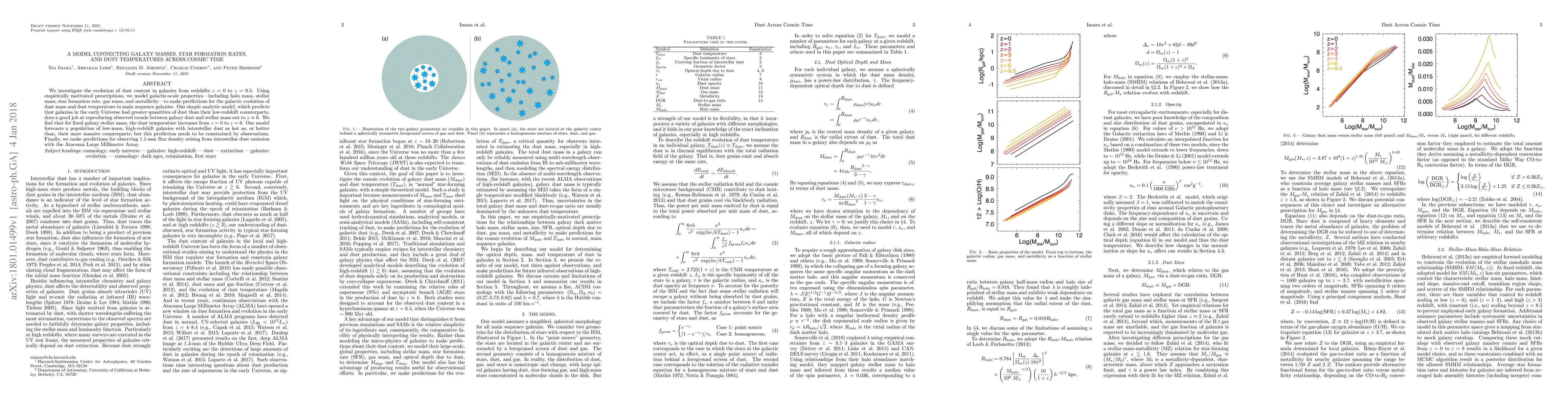 We investigate the evolution of dust content in galaxies from redshifts z=0 to z=9.5. Using empirically motivated prescriptions, we model galactic-scale properties -- including halo mass, stellar mass, star formation rate, gas mass, and metallicity -- to make predictions for the galactic evolution of dust mass and dust temperature in main sequence galaxies. Our simple analytic model, which predicts that galaxies in the early Universe had greater quantities of dust than their low-redshift counterparts, does a good job at reproducing observed trends between galaxy dust and stellar mass out to z~6. We find that for fixed galaxy stellar mass, the dust temperature increases from z=0 to z=6. Our model forecasts a population of low-mass, high-redshift galaxies with interstellar dust as hot as, or hotter than, their more massive counterparts; but this prediction needs to be constrained by observations. Finally, we make predictions for observing 1.1-mm flux density arising from interstellar dust emission with the Atacama Large Millimeter Array.