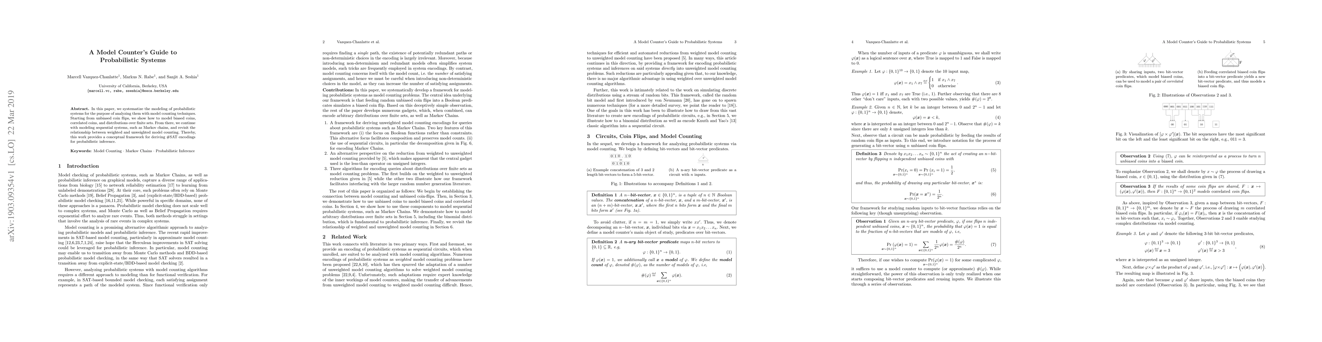 In this paper, we systematize the modeling of probabilistic systems for the purpose of analyzing them with model counting techniques. Starting from unbiased coin flips, we show how to model biased coins, correlated coins, and distributions over finite sets. From there, we continue with modeling sequential systems, such as Markov chains, and revisit the relationship between weighted and unweighted model counting. Thereby, this work provides a conceptual framework for deriving #SAT encodings for probabilistic inference.
