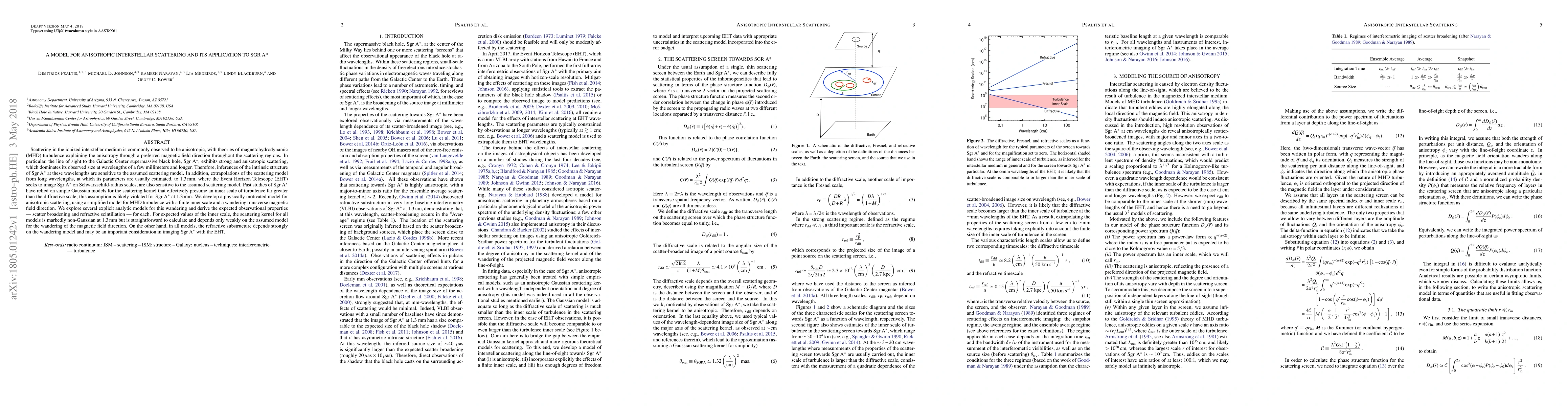 This paper develops a new model for anisotropic interstellar scattering, particularly for the Galactic Center's supermassive black hole, Sgr A*. It shows that the scattering is non-Gaussian at 1.3 mm and emphasizes the importance of the magnetic field's wandering direction in determining the scattering kernel's properties.