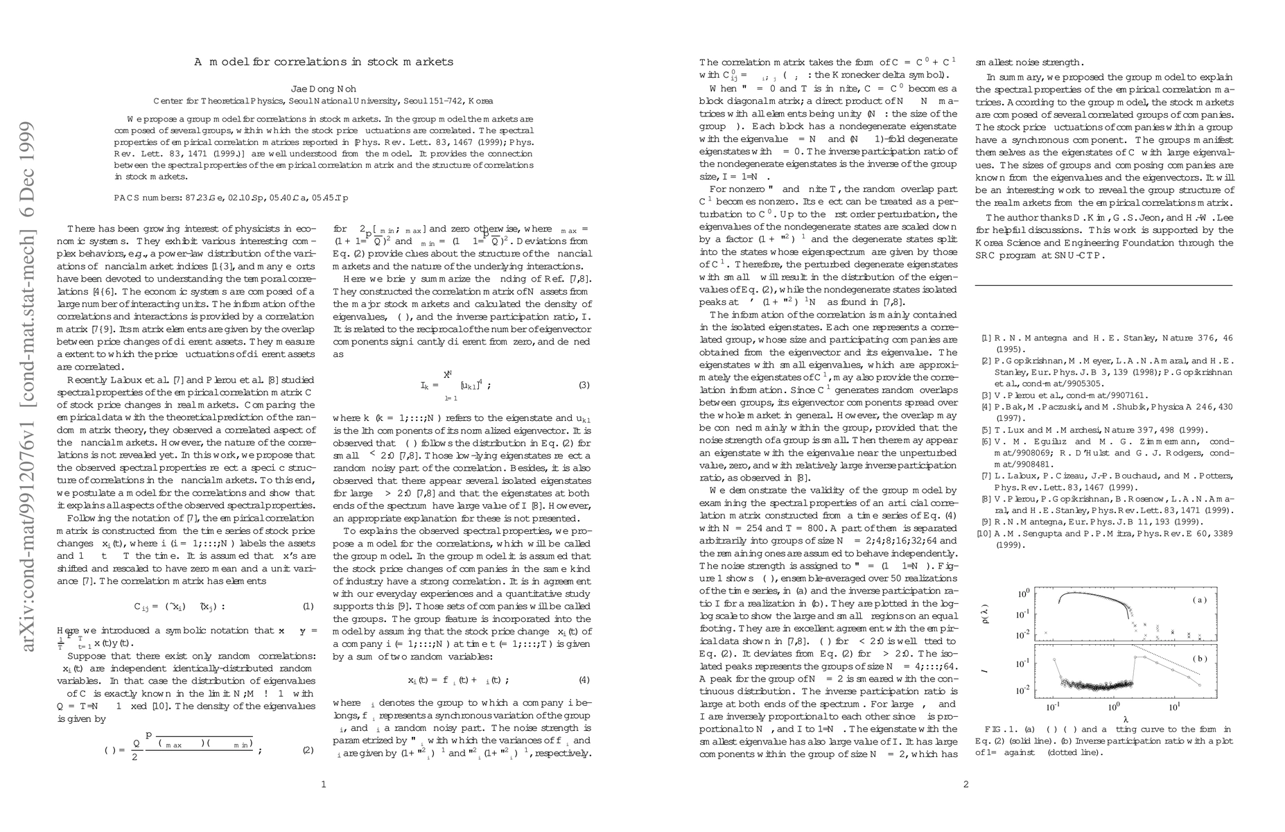 We propose a group model for correlations in stock markets. In the group model the markets are composed of several groups, within which the stock price fluctuations are correlated. The spectral properties of empirical correlation matrices reported in [Phys. Rev. Lett. {\bf 83}, 1467 (1999); Phys. Rev. Lett. {\bf 83}, 1471 (1999.)] are well understood from the model. It provides the connection between the spectral properties of the empirical correlation matrix and the structure of correlations in stock markets.