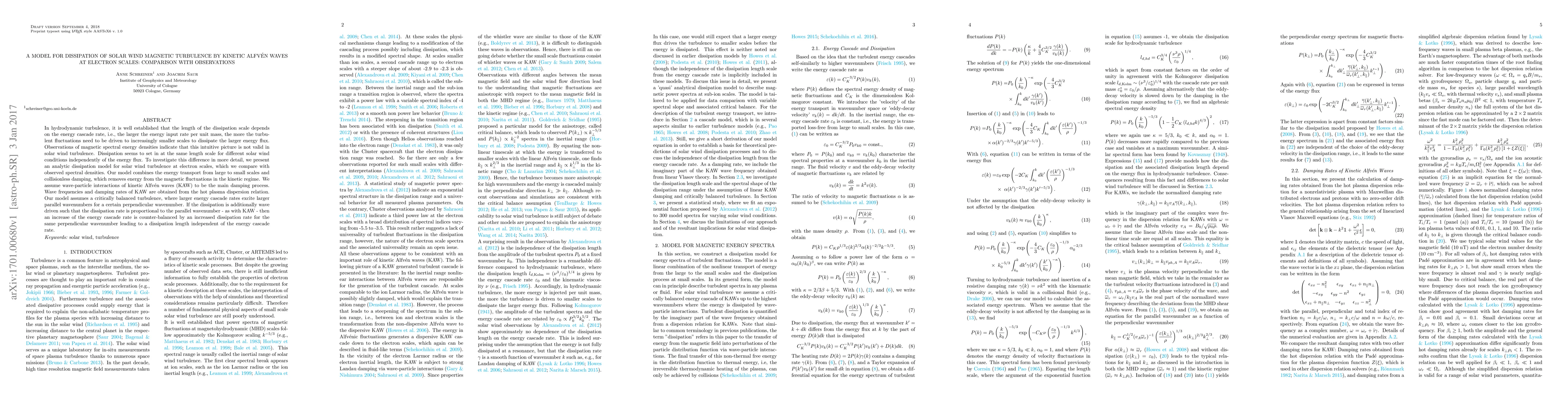 This paper proposes an analytic model for the dissipation of solar wind magnetic turbulence at electron scales, attributing it to kinetic Alfvén waves (KAW) and comparing it to observational data. The model suggests that dissipation occurs at a consistent length scale regardless of varying energy fluxes, challenging traditional hydrodynamic turbulence models.