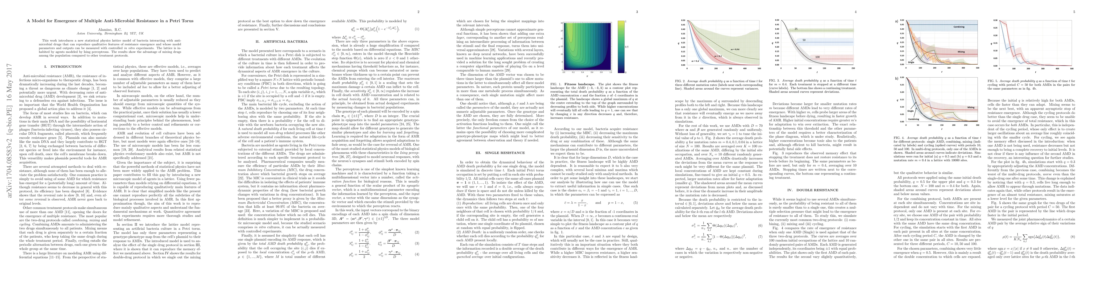 This work introduces a new statistical physics lattice model of bacteria interacting with anti-microbial drugs that can reproduce qualitative features of resistance emergence and whose model parameters and outputs can be measured with controlled \textit{in vitro} experiments. The lattice is inhabited by agents modeled by Ising perceptrons. The results show the advantage of mixing drugs among the population compared to other treatment protocols.