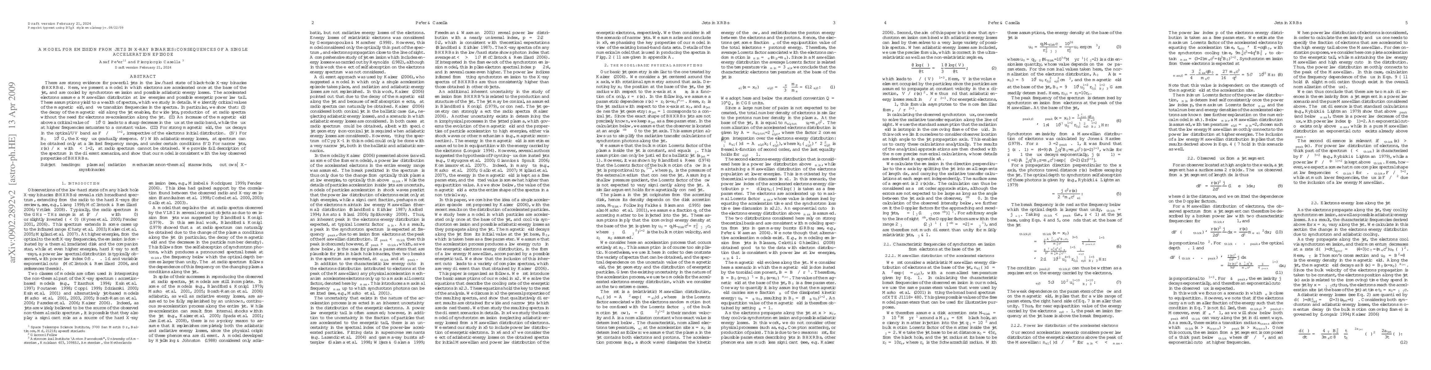 There are strong evidence for powerful jets in the low/hard state of black-hole X-ray binaries (BHXRBs). Here, we present a model in which electrons are accelerated once at the base of the jet, and are cooled by synchrotron emission and possible adiabatic energy losses. The accelerated electrons assume a Maxwellian distribution at low energies and possible energetic power law tail. These assumptions yield to a wealth of spectra, which we study in details. We identify critical values of the magnetic field, and five transition frequencies in the spectra. In particular, we show that: (I) the decay of the magnetic field along the jet enables, for wide jets, production of flat radio spectra without the need for electrons re-acceleration along the jet. (II) An increase of the magnetic field above a critical value of ~10^5 G leads to a sharp decrease in the flux at the radio band, while the flux at higher frequencies saturates to a constant value. (III) For strong magnetic field, the flux decays in the optical/UV band as F_nu ~ nu^{-1/2}, irrespective of the electrons initial distribution. (IV) For B_0 ~ 10^4 G, the X-ray flux gradually steepens. (V) With adiabatic energy losses, flat spectrum can be obtained only at a limited frequency range, and under certain conditions (VI) For narrow jets, r(x) ~ x^{alpha} with alpha < 1/2, flat radio spectrum cannot be obtained. We provide full description of the spectrum in the different scenarios, and show that our model is consistent with the key observed properties of BHXRBs.