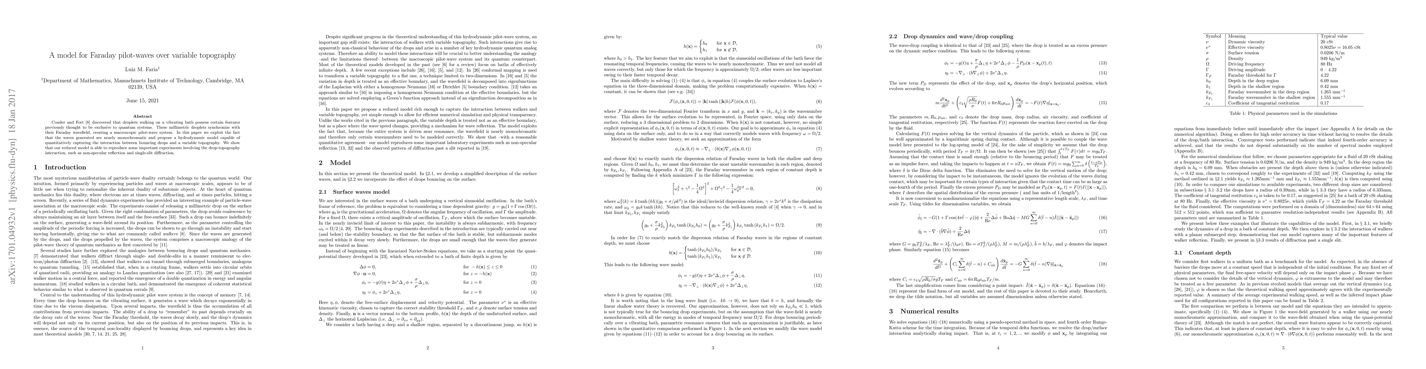 Couder and Fort discovered that droplets walking on a vibrating bath possess certain features previously thought to be exclusive to quantum systems. These millimetric droplets synchronize with their Faraday wavefield, creating a macroscopic pilot-wave system. In this paper we exploit the fact that the waves generated are nearly monochromatic and propose a hydrodynamic model capable of quantitatively capturing the interaction between bouncing drops and a variable topography. We show that our reduced model is able to reproduce some important experiments involving the drop-topography interaction, such as non-specular reflection and single-slit diffraction.