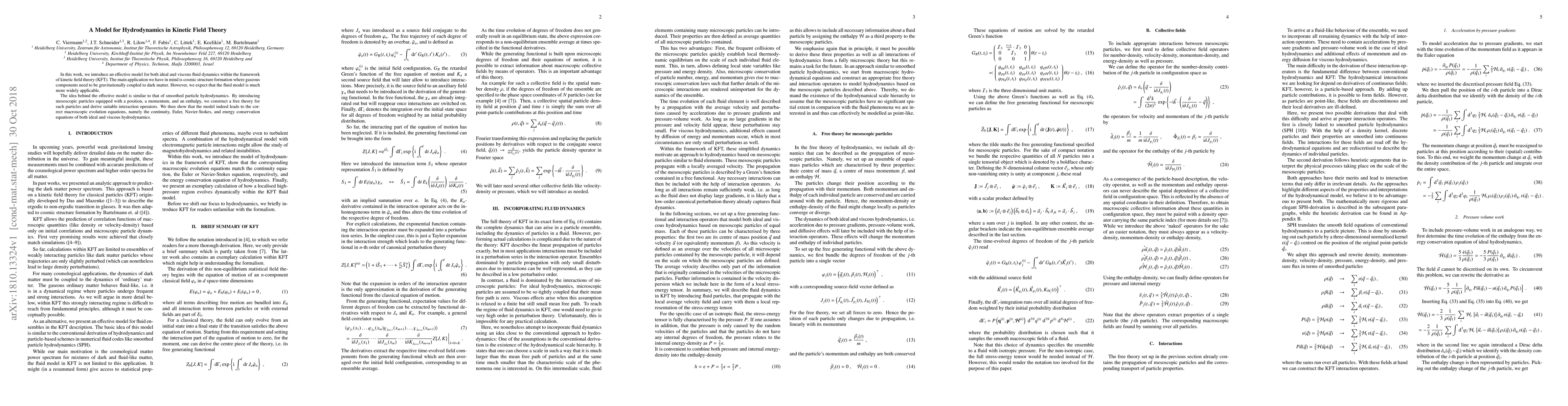 This paper presents a new effective model for ideal and viscous fluid dynamics within kinetic field theory, applicable to cosmic structure formation and potentially broader. The model uses mesoscopic particles to derive interaction operators, leading to the correct macroscopic evolution equations including the Navier-Stokes equations.