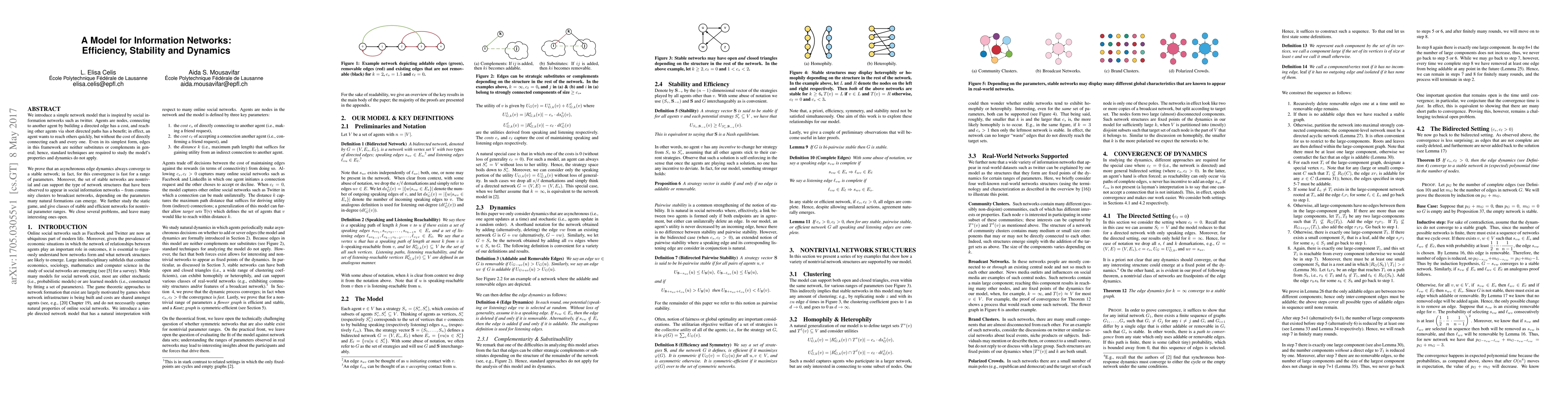 A simple network model inspired by social information networks shows that it converges to a stable network in an asynchronous setting, supporting various natural formations such as community clusters and broadcast networks.