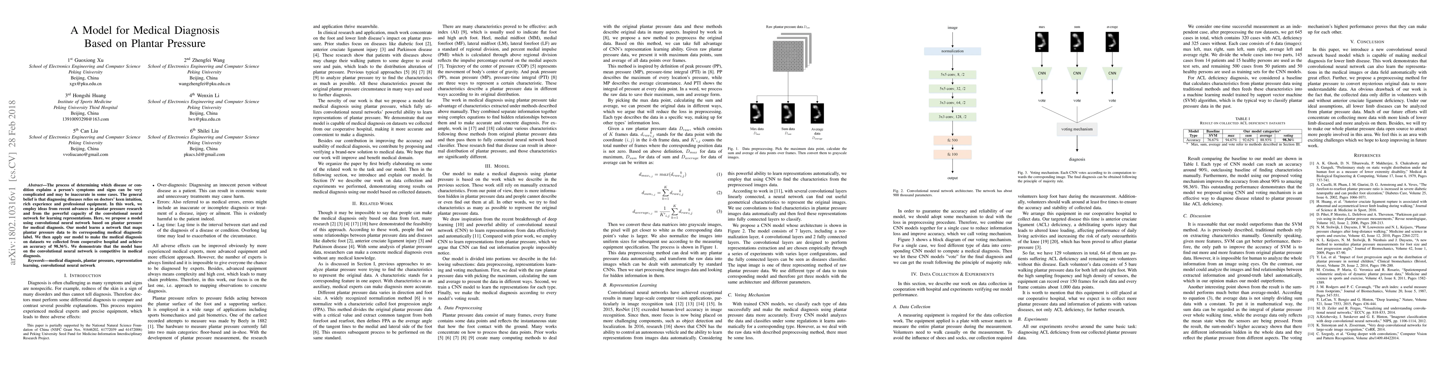 This paper proposes a convolutional neural network model for medical diagnosis based on plantar pressure data, achieving 98.36% accuracy on a hospital dataset. The model demonstrates the potential of using advanced neural networks to improve the accuracy and efficiency of medical diagnoses.