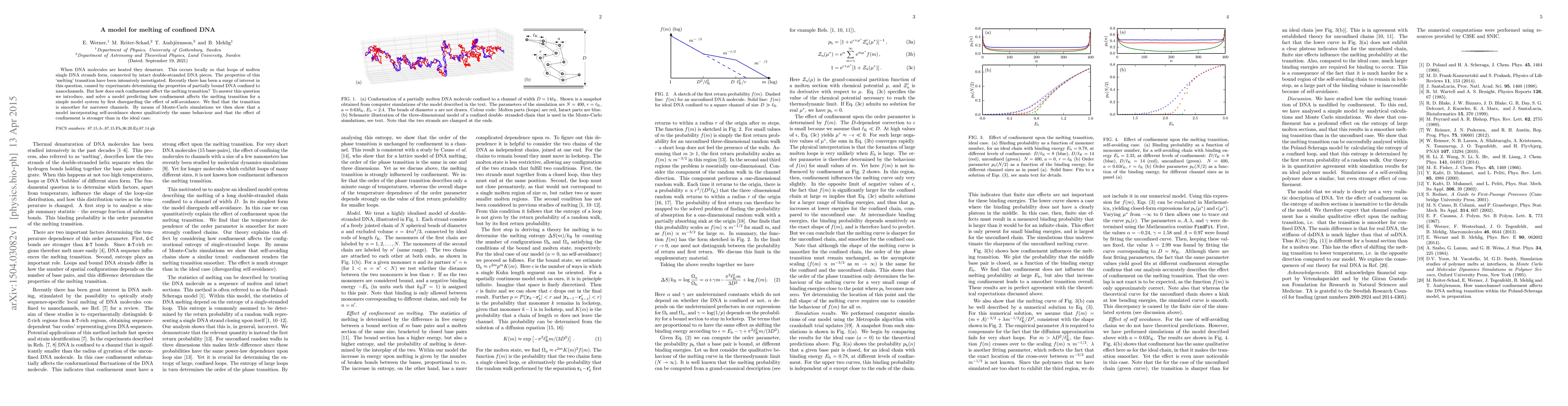 When DNA molecules are heated they denature. This occurs locally so that loops of molten single DNA strands form, connected by intact double-stranded DNA pieces. The properties of this "melting" transition have been intensively investigated. Recently there has been a surge of interest in this question, caused by experiments determining the properties of partially bound DNA confined to nanochannels. But how does such confinement affect the melting transition? To answer this question we introduce, and solve a model predicting how confinement affects the melting transition for a simple model system by first disregarding the effect of self-avoidance. We find that the transition is smoother for narrower channels. By means of Monte-Carlo simulations we then show that a model incorporating self-avoidance shows qualitatively the same behaviour and that the effect of confinement is stronger than in the ideal case.