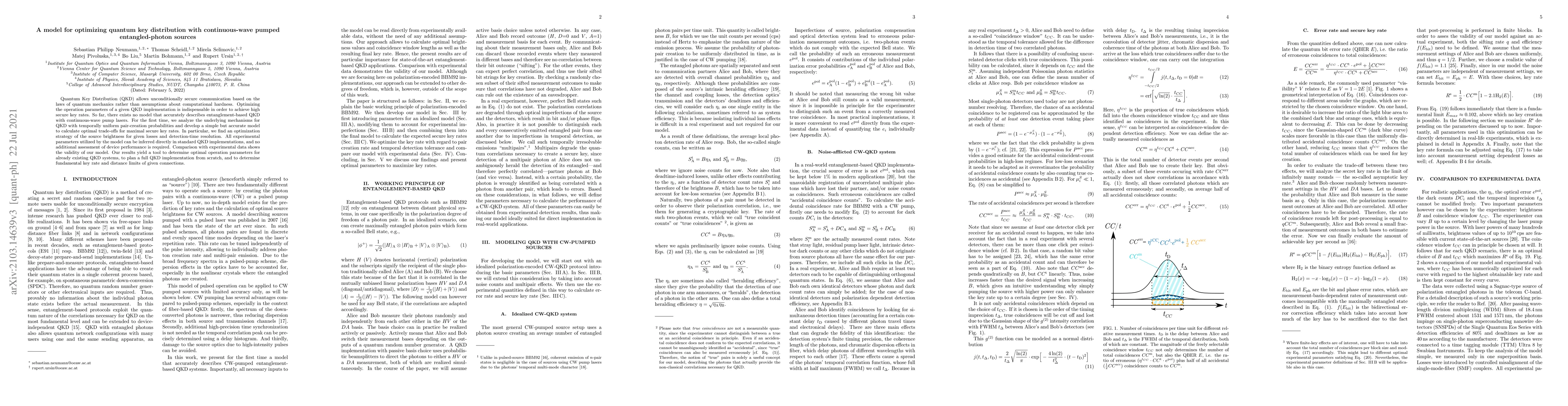Researchers developed a model to optimize quantum key distribution with continuous-wave pumped entangled-photon sources, providing a tool for determining optimal operation parameters and secure key rates.
