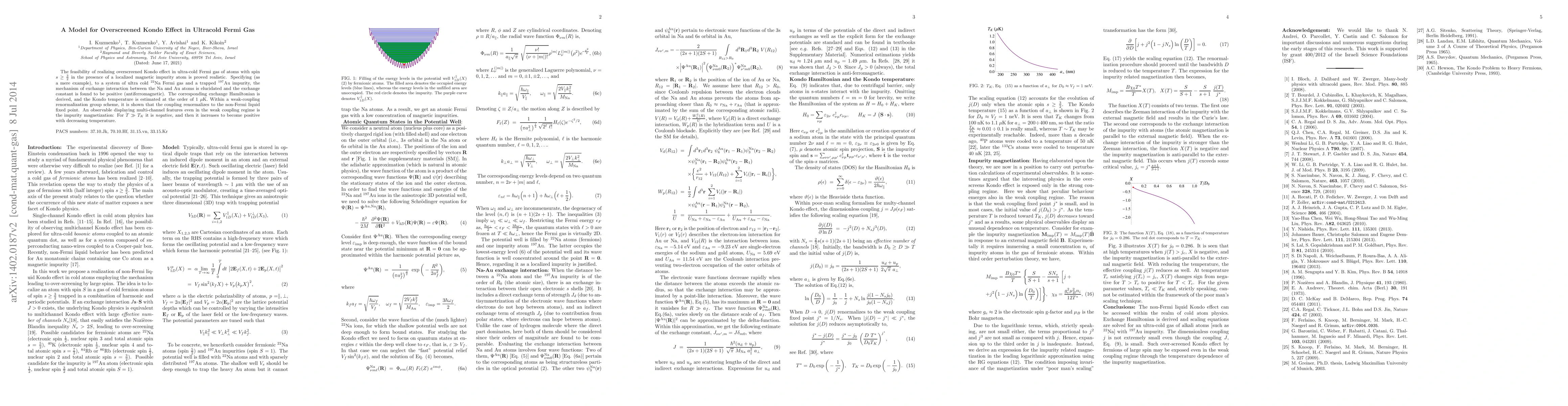 The feasibility of realizing overscreened Kondo effect in ultra-cold Fermi gas of atoms with spin $s \ge \tfrac{3}{2}$ in the presence of a localized magnetic impurity atom is proved realistic. Specifying to a system of ultra cold $^{22}$Na Fermi gas and a trapped $^{197}$Au impurity, the mechanism of exchange interaction between the Na and Au atoms is elucidated and the exchange constant is found to be antiferromagnetic. The corresponding exchange Hamiltonian is derived, and the Kondo temperature is estimated at the order of $ 1 \mu$K. Within a weak-coupling renormalization group scheme, it is shown that the coupling renormalizes to the non-Fermi liquid fixed point.