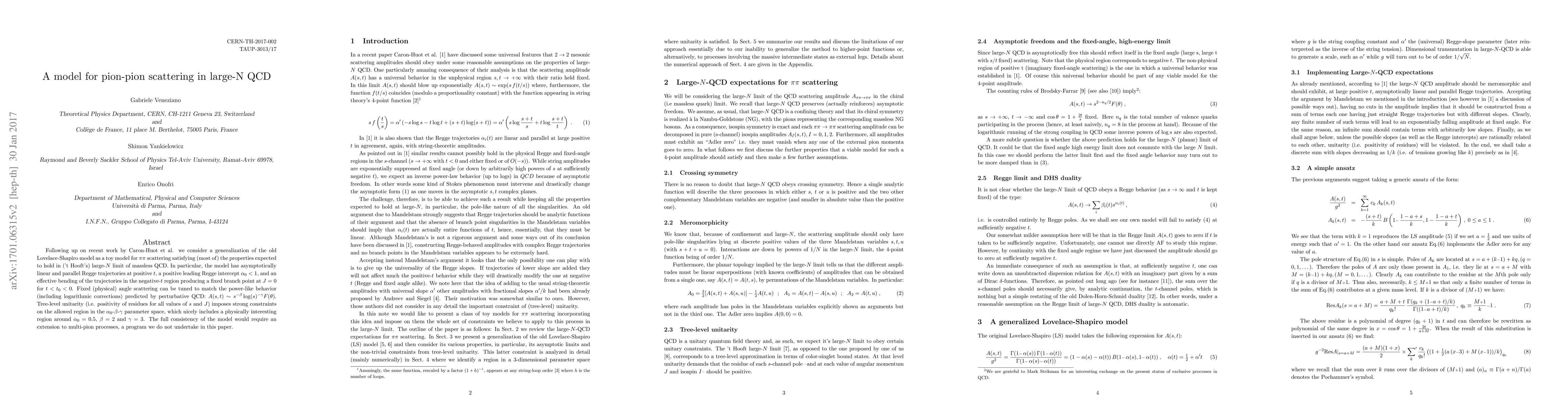 Following up on recent work by Caron-Huot et al. we consider a generalization of the old Lovelace-Shapiro model as a toy model for Pi-Pi scattering satisfying (most of) the properties expected to hold in ('t Hooft's) large-N limit of massless QCD. In particular, the model has asymptotically linear and parallel Regge trajectories at positive t, a positive leading Regge intercept $\alpha_0 < 1$, and an effective bending of the trajectories in the negative-t region producing a fixed branch point at J=0 for $t < t_0 < 0$. Fixed (physical) angle scattering can be tuned to match the power-like (including logarithmic corrections) behavior predicted by perturbative QCD: $A(s,t) ~ s^{-\beta} \log(s)^{-\gamma} F(\theta)$. Tree-level unitarity (i.e. positivity of residues for all values of s and J) imposes strong constraints on the allowed region in the alpha_0-beta-gamma parameter space, which nicely includes a physically interesting region around $\alpha_0 = 0.5$, $\beta = 2$ and $\gamma = 3$. The full consistency of the model would require an extension to multi-pion processes, a program we do not undertake in this paper.