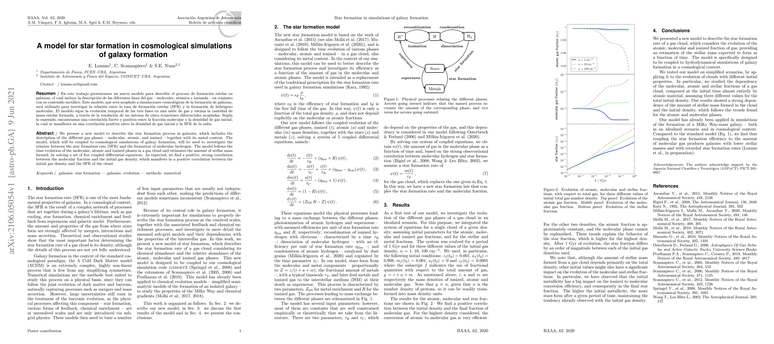 We present a new model to describe the star formation process in galaxies, which includes the description of the different gas phases -- molecular, atomic, and ionized -- together with its metal content. The model, which will be coupled to cosmological simulations of galaxy formation, will be used to investigate the relation between the star formation rate (SFR) and the formation of molecular hydrogen. The model follows the time evolution of the molecular, atomic and ionized phases in a gas cloud and estimates the amount of stellar mass formed, by solving a set of five coupled differential equations. As expected, we find a positive, strong correlation between the molecular fraction and the initial gas density, which manifests in a positive correlation between the initial gas density and the SFR of the cloud.