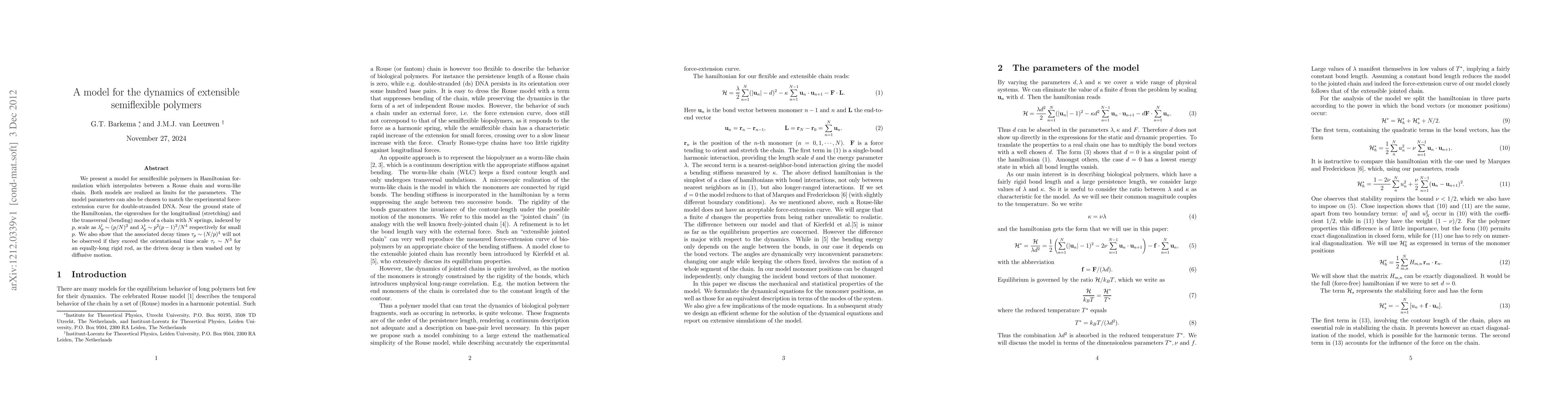 We present a model for semiflexible polymers in Hamiltonian formulation which interpolates between a Rouse chain and worm-like chain. Both models are realized as limits for the parameters. The model parameters can also be chosen to match the experimental force-extension curve for double-stranded DNA. Near the ground state of the Hamiltonian, the eigenvalues for the longitudinal (stretching) and the transversal (bending) modes of a chain with N springs, indexed by p, scale as lambda_lp ~ (p/N)^2 and lambda_tp ~ p^2(p-1)^2/N^4 respectively for small p. We also show that the associated decay times tau_p ~ (N/p)^4 will not be observed if they exceed the orientational time scale tau_r ~ N^3 for an equally-long rigid rod, as the driven decay is then washed out by diffusive motion.