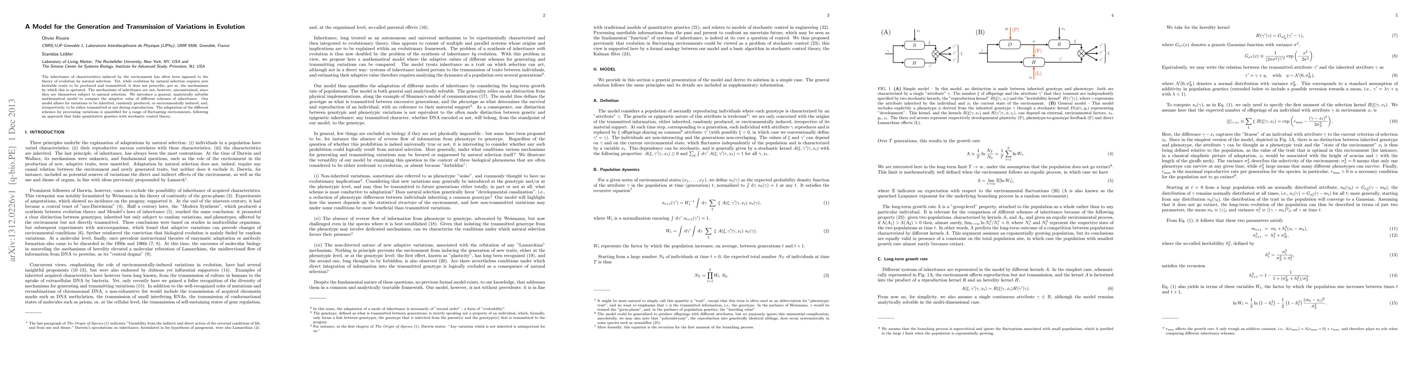 The inheritance of characteristics induced by the environment has often been opposed to the theory of evolution by natural selection. Yet, while evolution by natural selection requires new heritable traits to be produced and transmitted, it does not prescribe, per se, the mechanisms by which this is operated. The mechanisms of inheritance are not, however, unconstrained, since they are themselves subject to natural selection. We introduce a general, analytically solvable mathematical model to compare the adaptive value of different schemes of inheritance. Our model allows for variations to be inherited, randomly produced, or environmentally induced, and, irrespectively, to be either transmitted or not during reproduction. The adaptation of the different schemes for processing variations is quantified for a range of fluctuating environments, following an approach that links quantitative genetics with stochastic control theory.