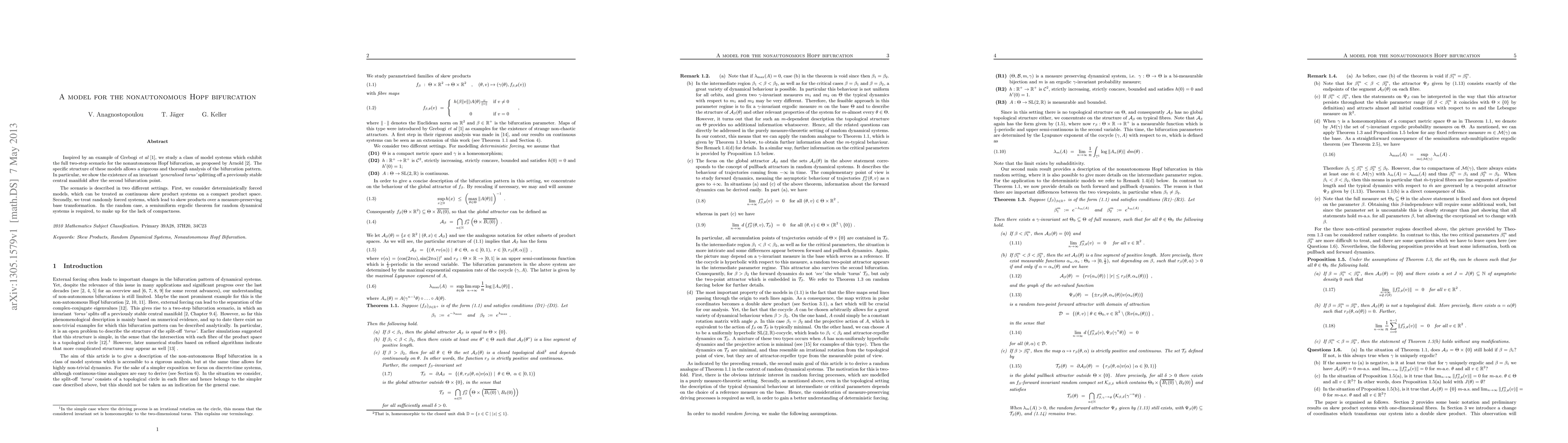 This paper studies nonautonomous Hopf bifurcation models, showing that after two bifurcation points, an invariant 'generalised torus' forms from a previously stable central manifold in both deterministic and random systems.