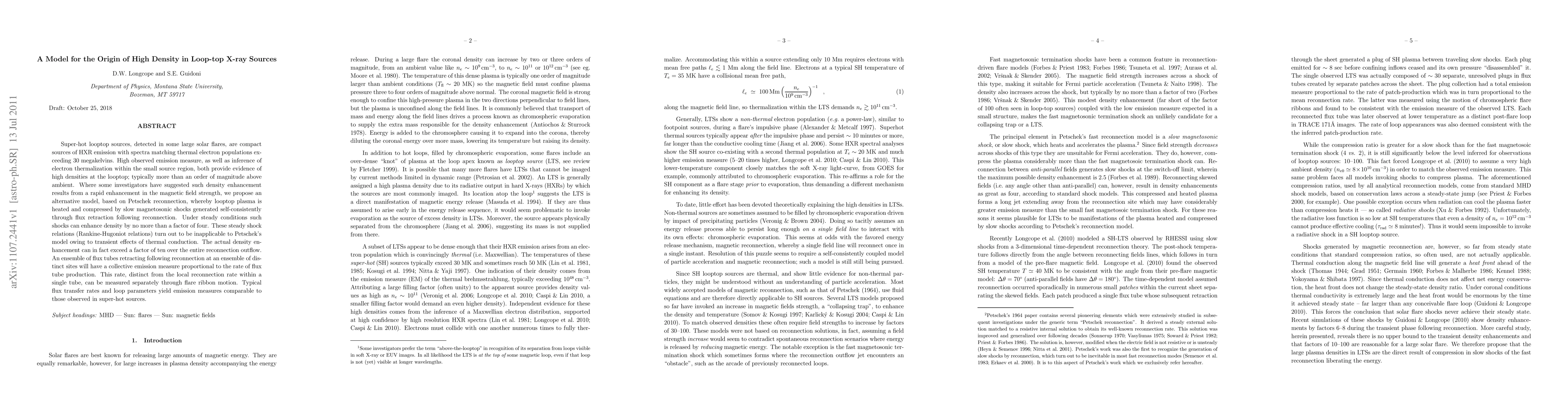 Super-hot looptop sources, detected in some large solar flares, are compact sources of HXR emission with spectra matching thermal electron populations exceeding 30 megakelvins. High observed emission measure, as well as inference of electron thermalization within the small source region, both provide evidence of high densities at the looptop; typically more than an order of magnitude above ambient. Where some investigators have suggested such density enhancement results from a rapid enhancement in the magnetic field strength, we propose an alternative model, based on Petschek reconnection, whereby looptop plasma is heated and compressed by slow magnetosonic shocks generated self-consistently through flux retraction following reconnection. Under steady conditions such shocks can enhance density by no more than a factor of four. These steady shock relations (Rankine-Hugoniot relations) turn out to be inapplicable to Petschek's model owing to transient effects of thermal conduction. The actual density enhancement can in fact exceed a factor of ten over the entire reconnection outflow. An ensemble of flux tubes retracting following reconnection at an ensemble of distinct sites will have a collective emission measure proportional to the rate of flux tube production. This rate, distinct from the local reconnection rate within a single tube, can be measured separately through flare ribbon motion. Typical flux transfer rates and loop parameters yield emission measures comparable to those observed in super-hot sources.