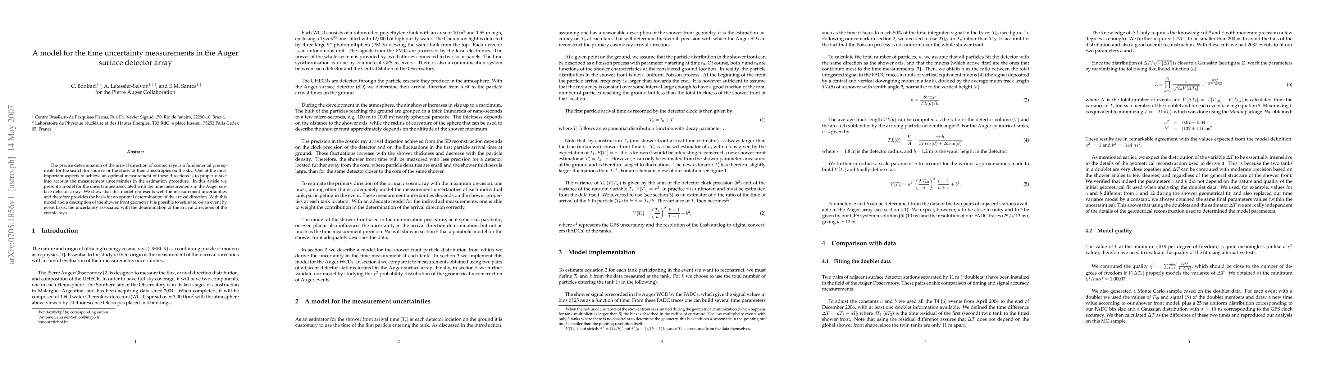 The precise determination of the arrival direction of cosmic rays is a fundamental prerequisite for the search for sources or the study of their anisotropies on the sky. One of the most important aspects to achieve an optimal measurement of these directions is to properly take into account the measurement uncertainties in the estimation procedure. In this article we present a model for the uncertainties associated with the time measurements in the Auger surface detector array. We show that this model represents well the measurement uncertainties and therefore provides the basis for an optimal determination of the arrival direction. With this model and a description of the shower front geometry it is possible to estimate, on an event by event basis, the uncertainty associated with the determination of the arrival directions of the cosmic rays.