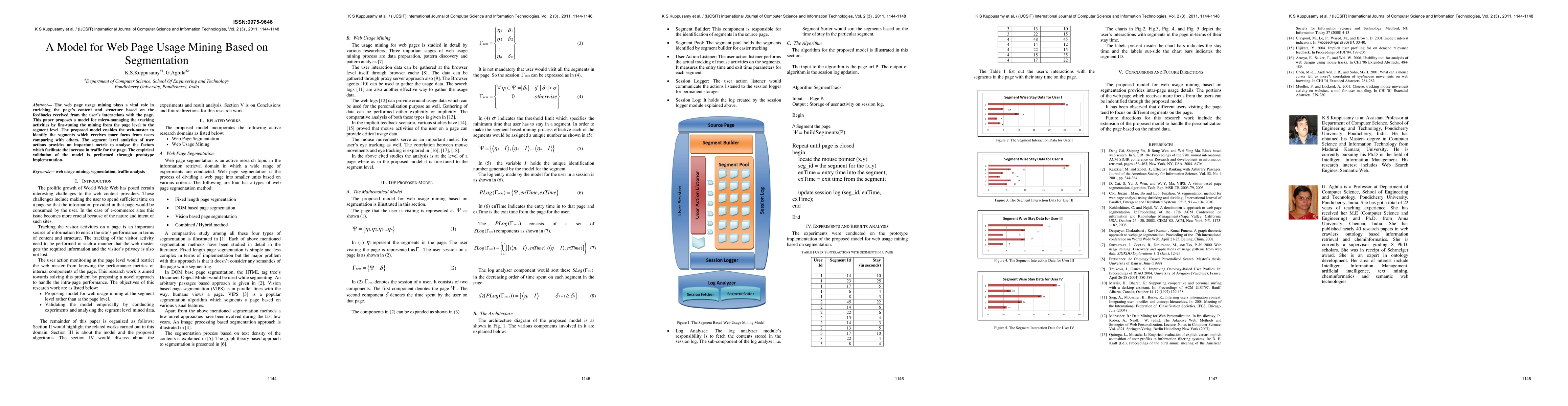 This paper proposes a model to fine-tune web page usage mining at the segment level, allowing webmasters to identify high-focus user segments and analyze factors that boost page traffic, validated through a prototype implementation.