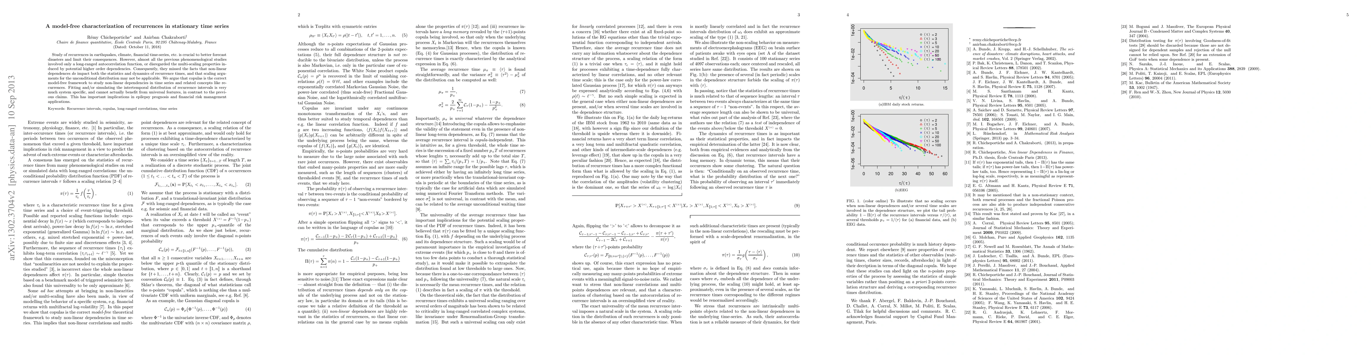 This paper proposes using copulas as a model-free framework for analyzing non-linear dependencies in stationary time series, emphasizing that recurrences in series like earthquakes and financial markets are influenced by higher-order dependencies. It argues against universal scaling features for recurrence time distributions and highlights the importance of system-specific modeling for applications in disaster forecasting and risk management.