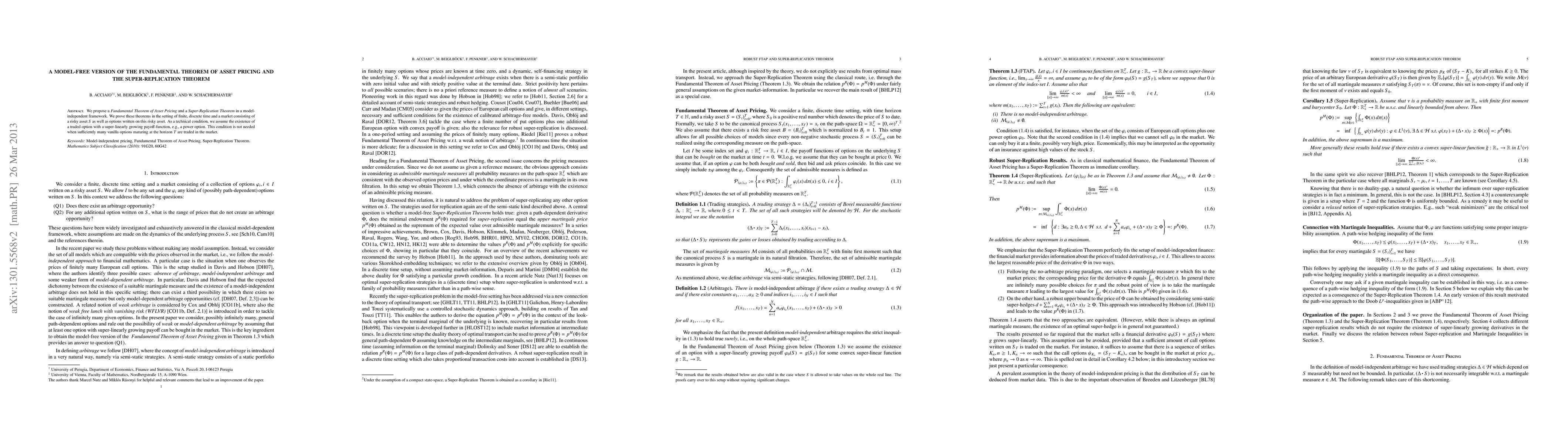 Summary: This paper proposes a model-free Fundamental Theorem of Asset Pricing and a Super-Replication Theorem in discrete time, assuming the existence of a super-linearly growing option or sufficient vanilla options. These theorems establish pricing and hedging principles without reliance on specific market models.
