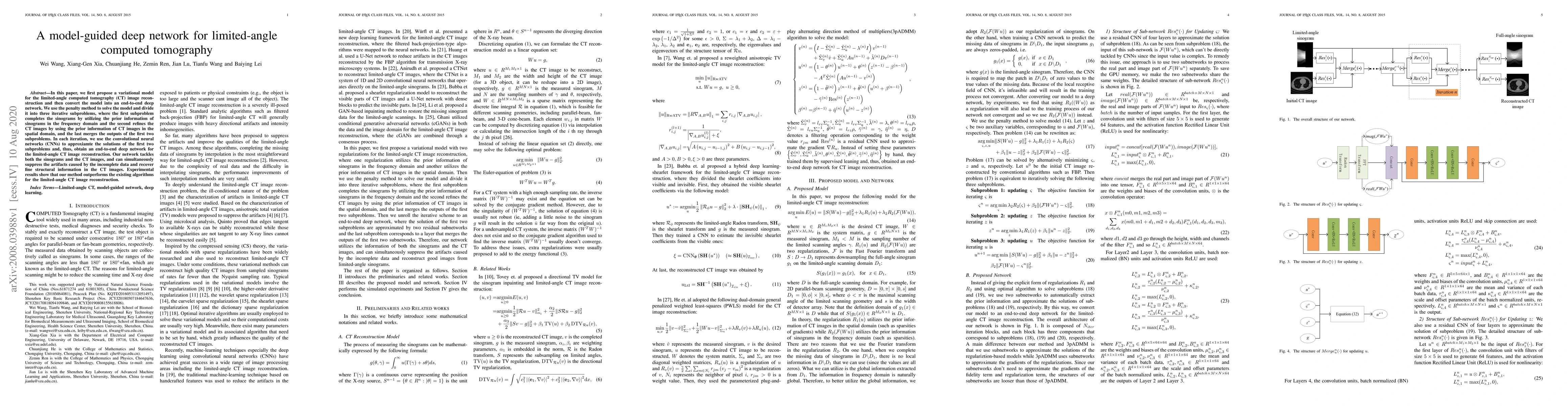 This paper proposes a deep network for limited-angle CT image reconstruction, converting a variational model into an end-to-end CNN that iteratively refines sinograms and CT images to suppress artifacts and recover fine details, outperforming existing algorithms.