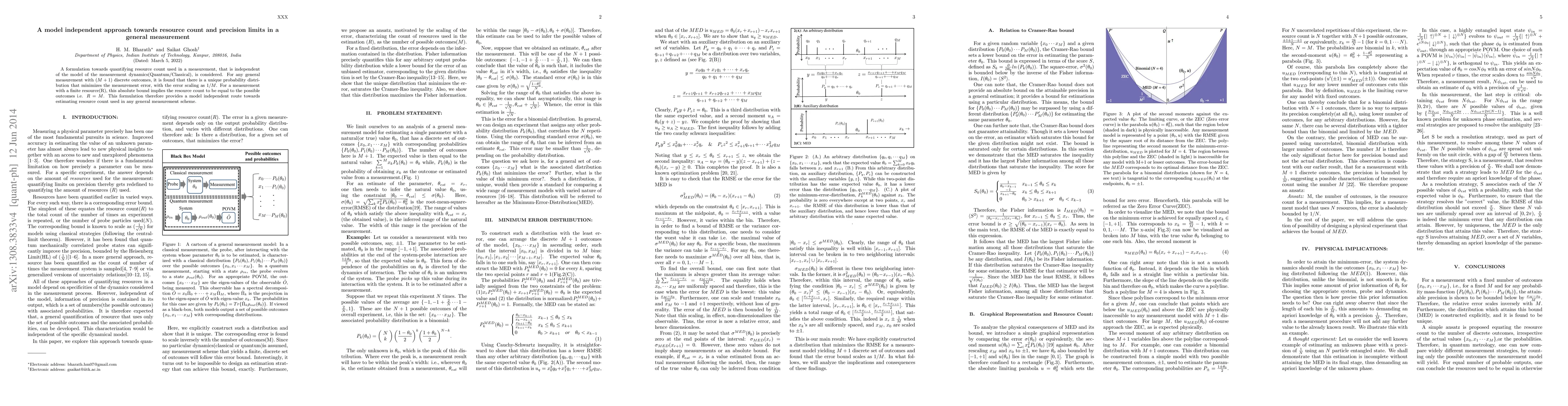 A formulation towards quantifying resource count used in a measurement, that is independent of the model of the measurement dynamics(Quantum/Classical), is considered. For any general measurement with $(M+1)$ discrete outcomes, it is found that there is a unique probability distribution that minimizes the measurement error, with the error scaling as $1/M$. For a measurement with a finite resource$(R)$, this absolute bound implies the resource count to be equal to the possible outcomes i.e. $R=M$. This formulation therefore provides a model independent route towards estimating resource count used in any general measurement scheme.