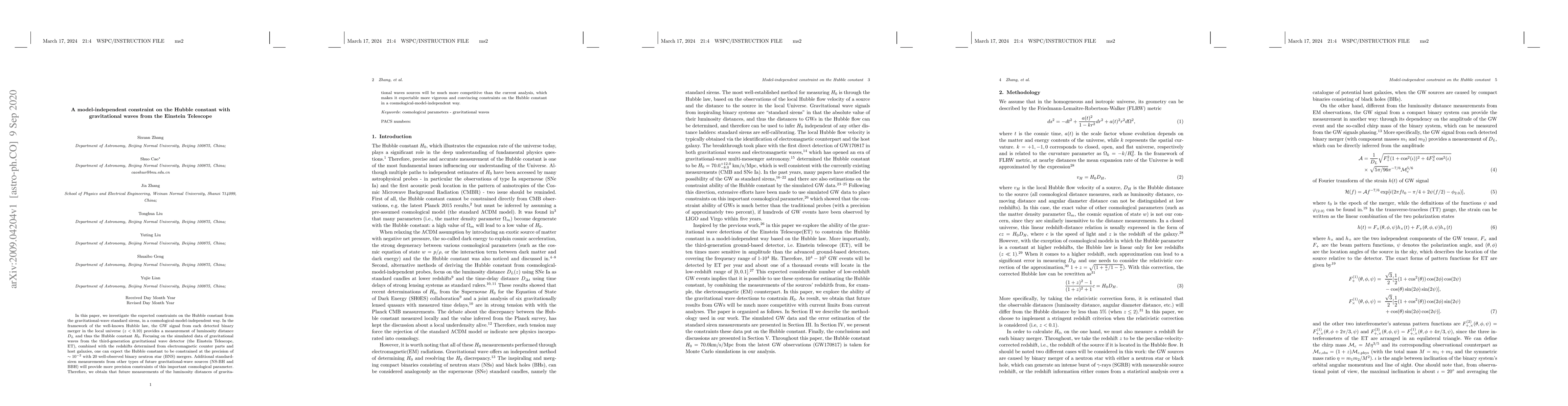 This paper explores model-independent constraints on the Hubble constant using gravitational waves from the Einstein Telescope, predicting a precision of $\sim 10^{-2}$ from 20 binary neutron star mergers. Future measurements from additional sources will further refine these constraints.