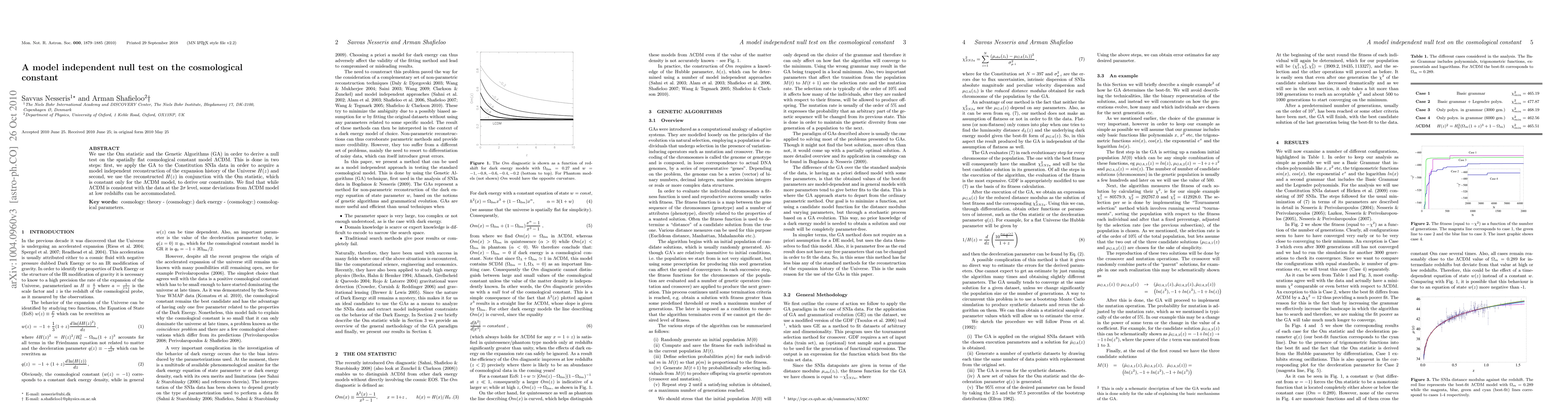 We use the Om statistic and the Genetic Algorithms (GA) in order to derive a null test on the spatially flat cosmological constant model $\Lambda$CDM. This is done in two steps: first, we apply the GA to the Constitution SNIa data in order to acquire a model independent reconstruction of the expansion history of the Universe $H(z)$ and second, we use the reconstructed $H(z)$ in conjunction with the Om statistic, which is constant only for the $\Lambda$CDM model, to derive our constraints. We find that while $\Lambda$CDM is consistent with the data at the $2\sigma$ level, some deviations from $\Lambda$CDM model at low redshifts can be accommodated.