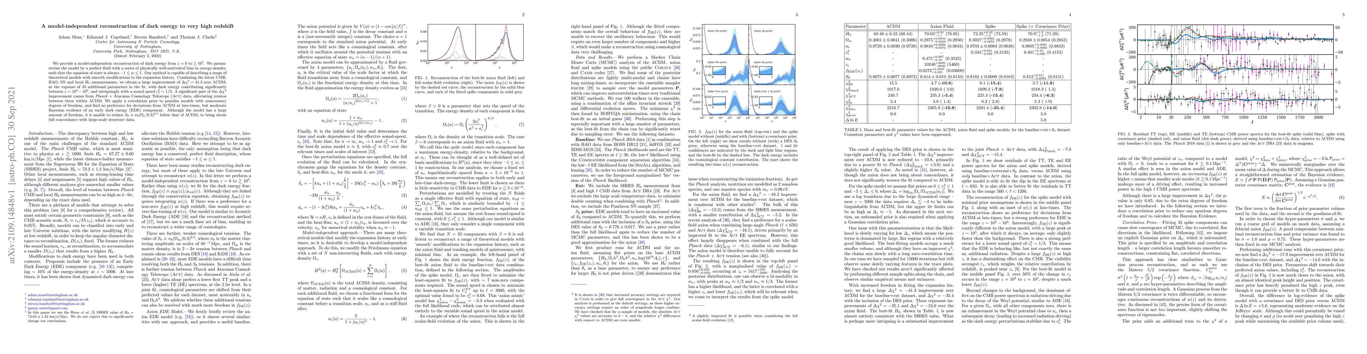 We provide a model-independent reconstruction of dark energy from $z=0$ to $ \gtrsim 10^5$. We parameterise the model by a perfect fluid with a series of physically well-motivated bins in energy-density, such that the equation of state is always $-1 \le w \le 1$. Our method is capable of describing a range of theoretical models with smooth modifications to the expansion history. Combining the latest CMB, BAO, SN and local $H_0$ measurements, we obtain a large improvement of $\Delta \chi^2=41.3$ over LCDM, at the expense of 33 additional parameters in the fit, with dark energy contributing significantly between $z \sim 10^4 - 10^5$, and intriguingly with a sound speed $c_s^2 \sim 1/3$. A significant part of the $\Delta \chi^2$ improvement comes from \Planck\ + Atacama Cosmology Telescope (\textsc{Act}) data, alleviating tension between them within LCDM. We apply a correlation prior to penalise models with unnecessary degrees of freedom and find no preference for deviations from LCDM at late-times, but moderate Bayesian evidence of an early dark energy (EDE) component. Although the model has a large amount of freedom, it is unable to reduce $S_8 \equiv \sigma_8 (\Omega_\mathrm{c} / 0.3)^{0.5}$ below that of \lcdm, to bring about full concordance with large-scale structure data.