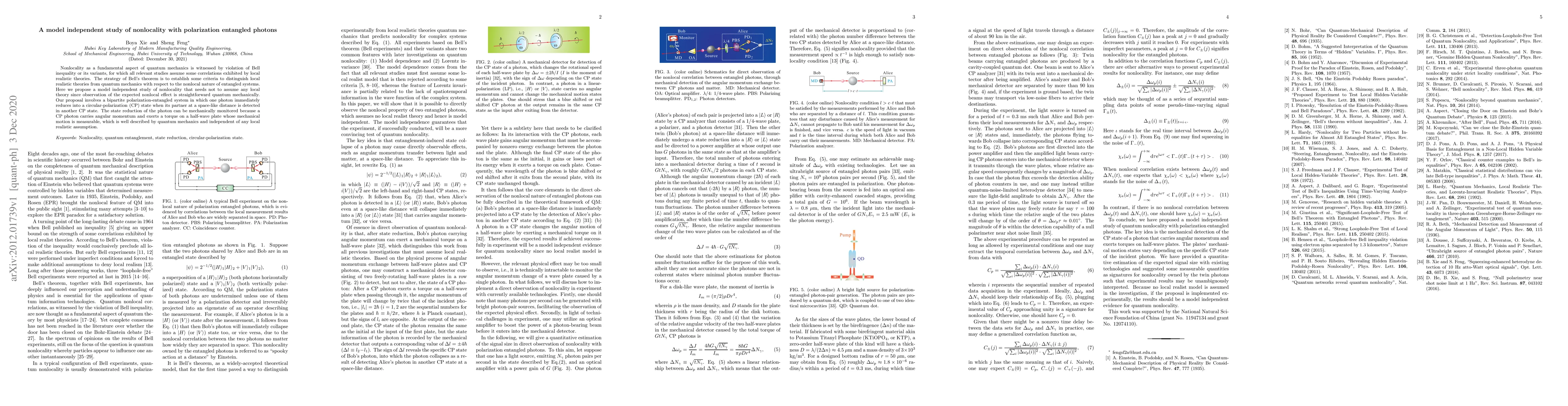This paper proposes a model-independent study of quantum nonlocality using polarization-entangled photons, demonstrating nonlocal effects without assuming local realistic theories. The method involves monitoring the mechanical motion of a half-wave plate influenced by the angular momentum of a photon, providing a direct quantum mechanical observation of nonlocality.