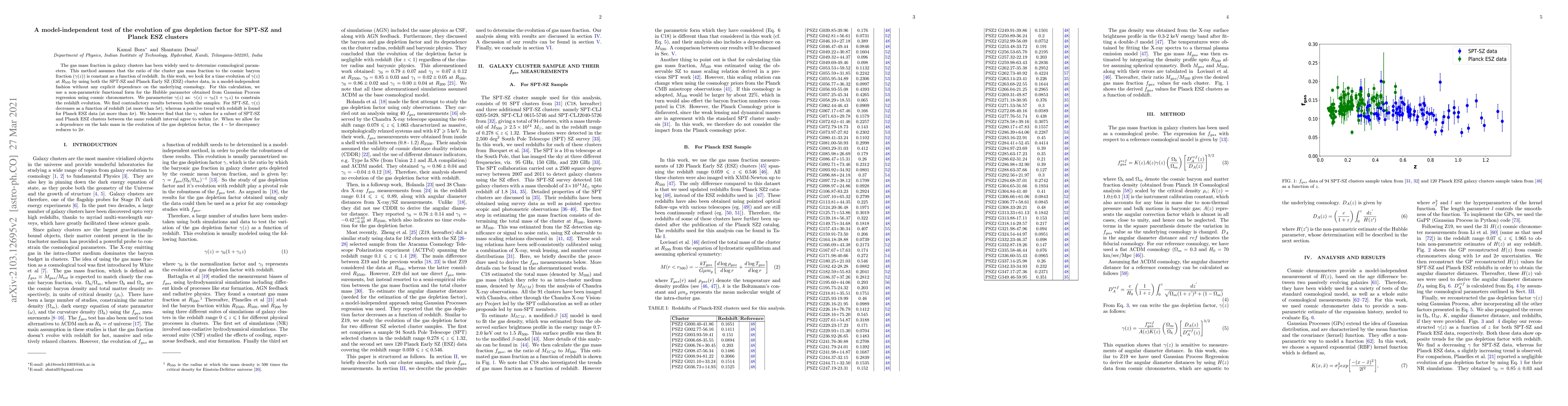 The gas mass fraction in galaxy clusters has been widely used to determine cosmological parameters. This method assumes that the ratio of the cluster gas mass fraction to the cosmic baryon fraction ($\gamma(z)$) is constant as a function of redshift. In this work, we look for a time evolution of $\gamma(z)$ at $R_{500}$ by using both the SPT-SZ and Planck Early SZ (ESZ) cluster data, in a model-independent fashion without any explicit dependence on the underlying cosmology. For this calculation, we use a non-parametric functional form for the Hubble parameter obtained from Gaussian Process regression using cosmic chronometers. We parameterize $\gamma(z)$ as: $\gamma(z)= \gamma_0(1+\gamma_1 z)$ to constrain the redshift evolution. We find contradictory results between both the samples. For SPT-SZ, $\gamma (z)$ decreases as a function of redshift (at more than 5$\sigma$), whereas a positive trend with redshift is found for Planck ESZ data (at more than 4$\sigma$). We however find that the $\gamma_1$ values for a subset of SPT-SZ and Planck ESZ clusters between the same redshift interval agree to within $1\sigma$. When we allow for a dependence on the halo mass in the evolution of the gas depletion factor, the $4-5\sigma$ discrepancy reduces to $2\sigma$.