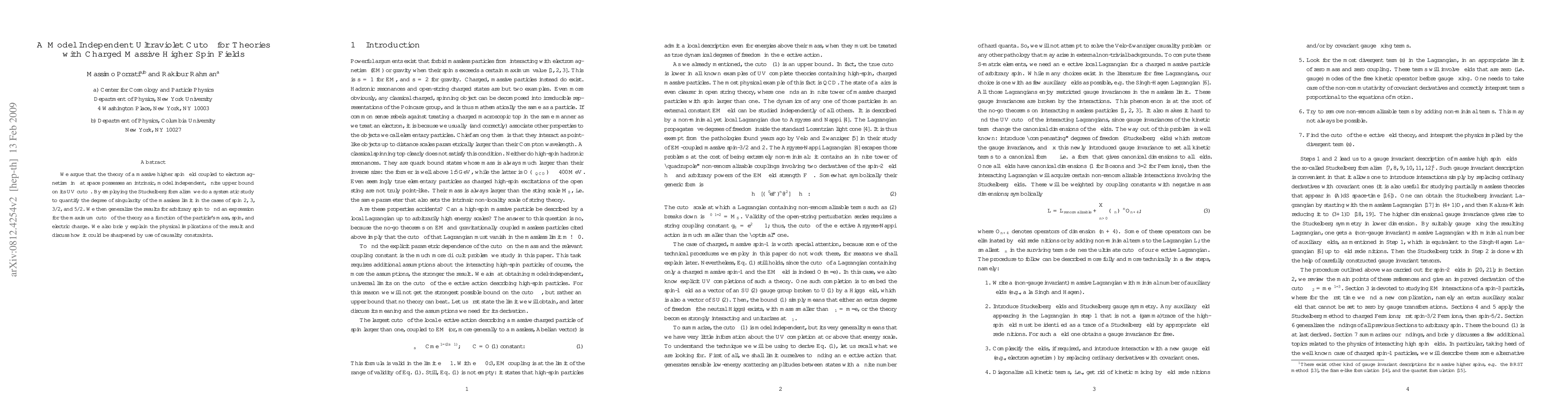 Researchers found a model-independent upper bound on the ultraviolet cutoff for theories with charged massive higher spin fields, which depends on particle mass, spin, and charge, offering new insights into their behavior at high energies.