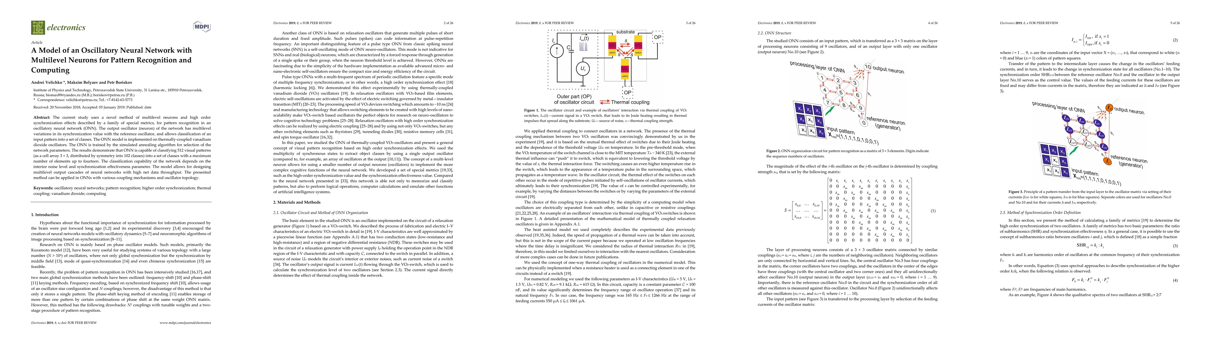 This paper proposes an oscillatory neural network (ONN) using multilevel neurons and high-order synchronization for pattern recognition. The ONN, implemented with thermally-coupled vanadium dioxide oscillators, is trained using simulated annealing and can classify 512 visual patterns into up to fourteen classes, demonstrating high net data throughput.